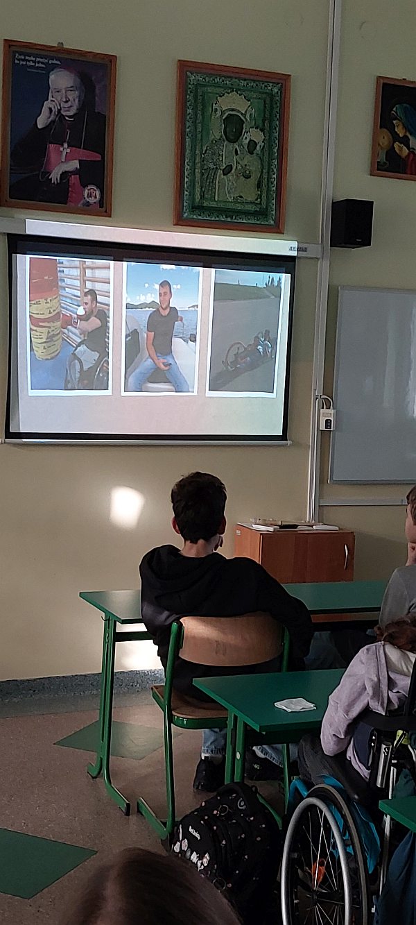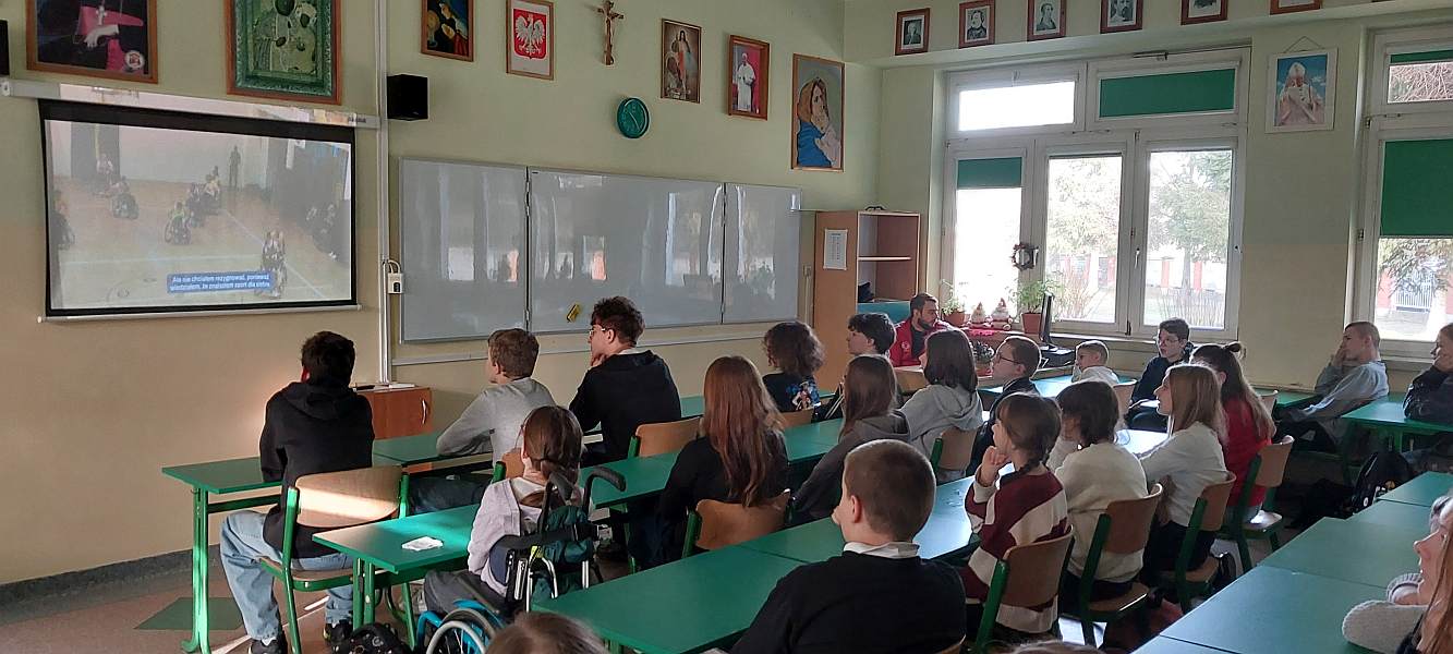 i inspiruje. Uczniowie obejrzeli materiały filmowe ukazujące dyscypliny sportowe, w których świetnie sprawdzają się osoby z niepełnosprawnością. Zobaczyli, że można przełamywać bariery, pokonywać własne słabości, korzystać z życia, jeśli ma się wokół siebie przychylne środowisko i chęć do działania. Ruch staje się mocą i najlepszą rehabilitacją oraz integruje środowiska.