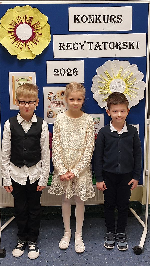 W dniu 3 marca 2026 w naszej szkole odbył się konkurs recytatorski dla uczniów klas 1-3, poświęcony polskiej poezji dziecięcej. Wydarzenie miało na celu popularyzację literatury pięknej, rozwijanie zdolności estradowych oraz kształtowanie wrażliwości na piękno ojczystego języka. Uczniowie zaprezentowali niezwykle bogaty repertuar. Na scenie królowały utwory klasyków, takich jak Jan Brzechwa czy Julian Tuwim. Nie zabrakło również wierszy współczesnych autorów, m.in. Danuty Wawiłow.