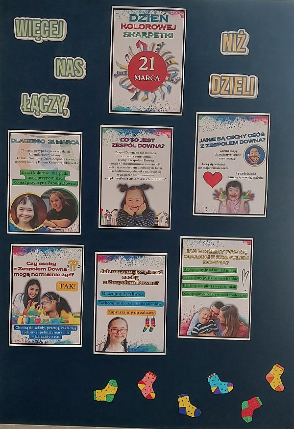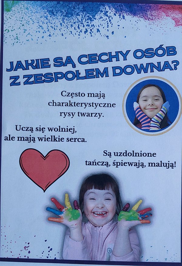 Prosimy, włącz się do akcji! Przeczytaj informacje na temat zespołu Downa umieszczone na szkolnych tablicach. Rozwijaj swoją empatię i otwieraj się na potrzeby innych.
