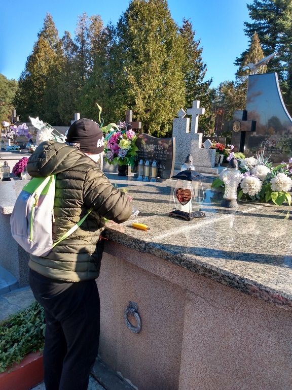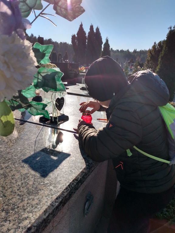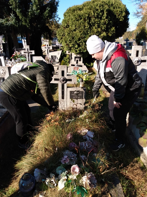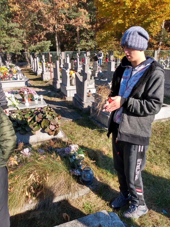 Jak co roku, uczniowie udali się na cmentarz Cmentarz Komunalny w Mielcu. Uporządkowali opuszczone groby, zapalili znicze oraz pomodlili się za zmarłych.