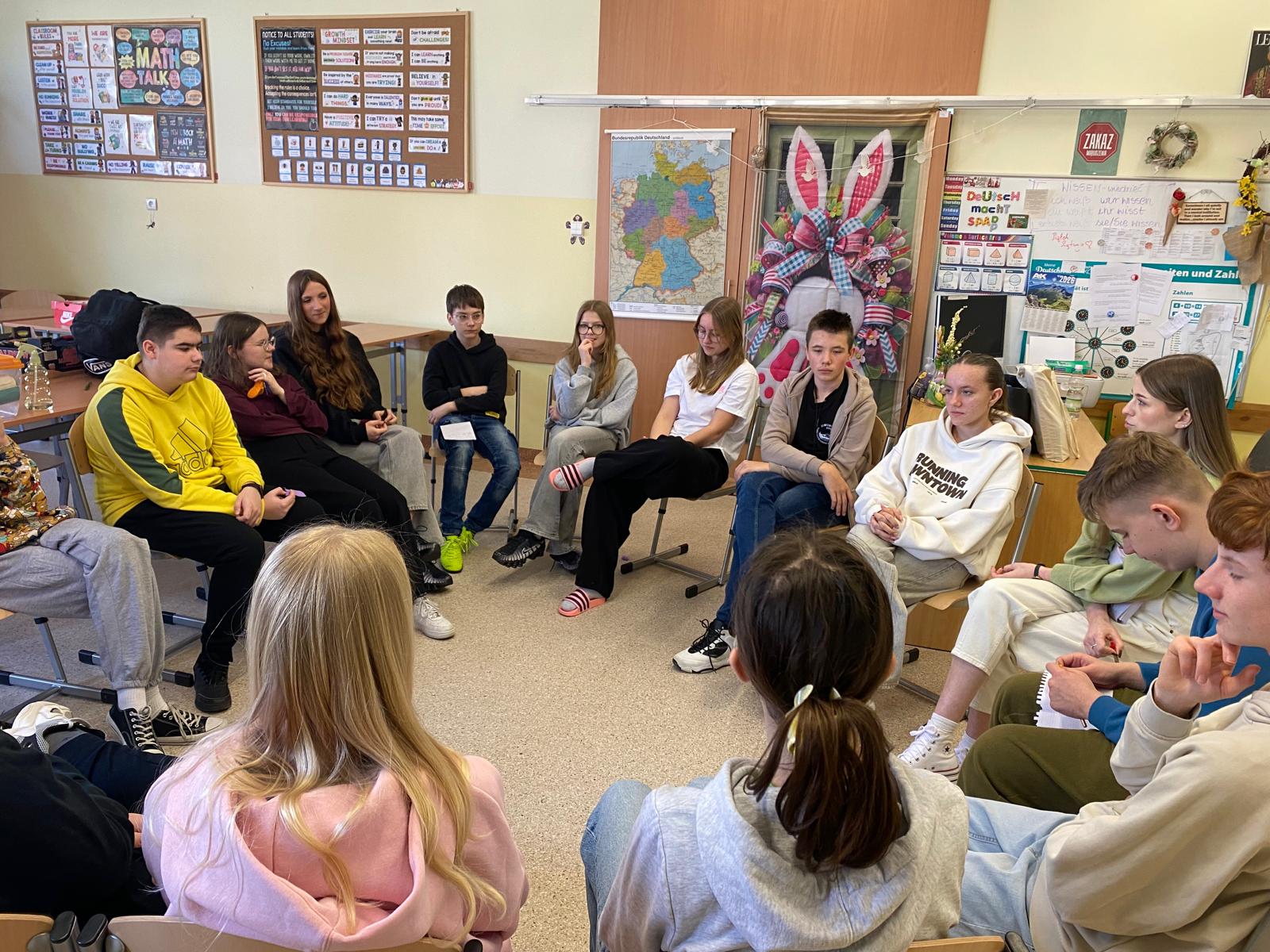 W ostatnich dniach uczniowie klas siódmych wzięli udział w wyjątkowych warsztatach realizowanych w ramach ogólnopolskiego projektu ministerialnego. Zajęcia prowadziły doświadczone trenerki z Fundacji PRO-FIL z Rzeszowa, które w sposób warsztatowy i angażujący przybliżyły młodzieży tematykę przeciwdziałania przemocy i agresji. Ważnym elementem warsztatów było także dbanie o dobrostan psychiczny. Uczniowie poznali podstawowe techniki radzenia sobie ze stresem i napięciem, uczyli się rozpoznawać swoje emocje oraz sposoby ich konstruktywnego wyrażania. Podczas zajęć młodzież zastanawiała się również, gdzie i w jaki sposób można szukać pomocy w sytuacjach trudnych. Dziękujemy za dawkę wiedzy i cenne wskazówki, które pomogą nam tworzyć szkołę wolną od agresji i przemocy. Cieszymy się, że nasi uczniowie tak chętnie zaangażowali się w ten ważny ministerialny projekt.