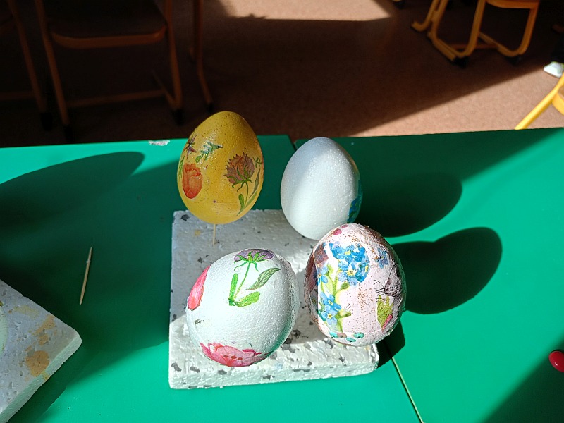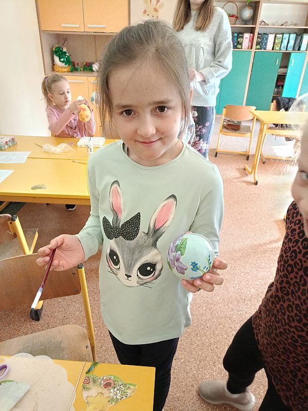 25 marca odbyły się warsztaty Decoupage. Dzieci nauczyły się ozdabiać jajka nową techniką , z pomocą wychowawczyni i mamy Tymoteusza oraz mamy Emilki powstały pisanki które ozdobią koszyczki lub stroiki wielkanocne.