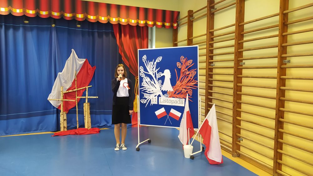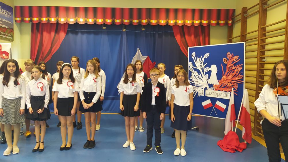 Z tej okazji uczniowie klas 4-8 przygotowali akademię, aby świętować ten wyjątkowy dla nas – Polaków dzień. Występujący przedstawili dzieje Polski związane z okresem zaborów, a także okoliczności odzyskania niepodległości przez nasz kraj. Wzruszające pieśni patriotyczne przybliżyły fakty dotyczące walki Polaków o wolną Ojczyznę. Interpretacje muzyczne i recytatorskie pozwoliły zrozumieć rozterki i uczucia walczących o niepodległość. Przez wiele lat zaborcy próbowali narzucić Polakom swoją kulturę, język, obyczaje, religię. Dzięki patriotycznym sercom naszych pradziadów najcenniejsze wartości zostały uratowane. Dzień 11 listopada przypomina nam, że wolność raz zdobyta i niepodległość raz osiągnięta nie są dane na zawsze, lecz należy wciąż dbać o te wartości i stale je pielęgnować.