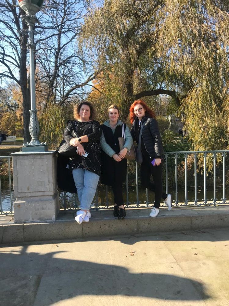 Po obiedzie w uczelnianym bistro, udaliśmy się na spacer po Łazienkach Królewskich. Na wszystkich największe wrażenie zrobił Teatr na Wyspie, a w szczególności półkolista widownia, scena położona na sztucznej wyspie i rząd kamiennych rzeźb, przedstawiających sławnych autorów dramatycznych. Przepiękna flora i fauna parku zachęcała do licznych do zdjęć - "pozowały" nam przepiękne pawie i liczne wiewiórki.