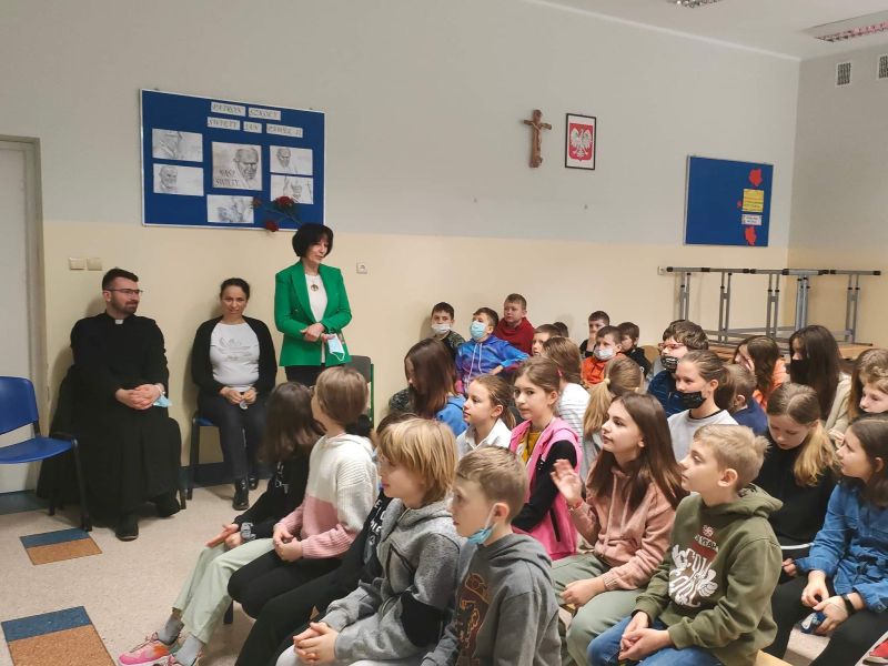 Specjalnie zaproszonym gościem była autorka książki „Mój syn” Pani Magdalena Mikutel, która przybliżyła uczniom tajniki sztuki literackiej oraz przedstawiła warsztat pracy pisarza. Zachęciła do krzewienia kultury języka polskiego i czytania książek. Wskazała wartości, którymi należy kierować się w życiu, a także zainspirowała uczniów do podjęcia własnej próby pisarskiej.