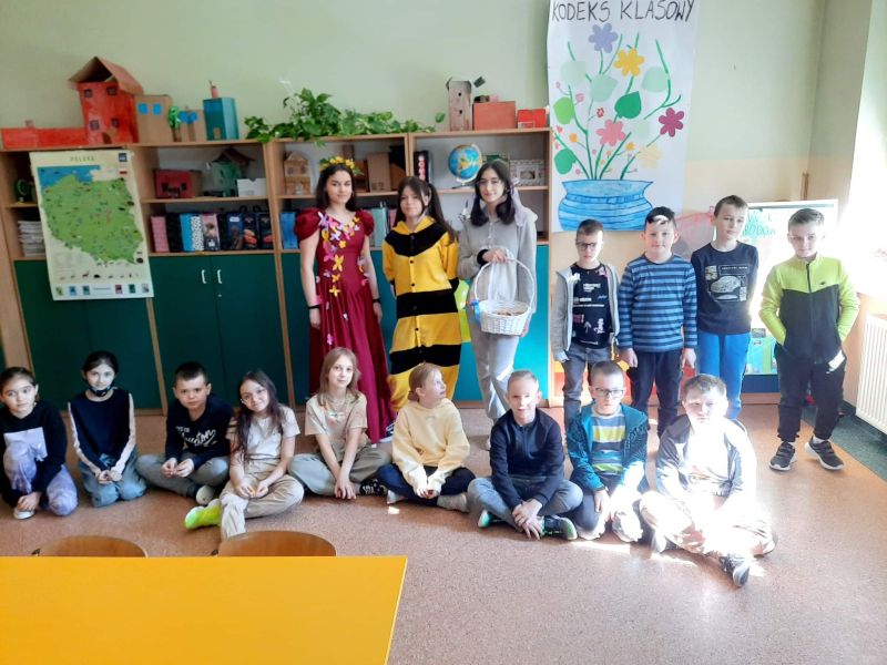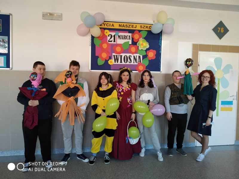 21 marca organizatorem Pierwszego Dnia Wiosny w szkole był Samorząd Uczniowski. Uczniowie w pięknych wiosennych strojach powitali Wiosnę na szkolnych korytarzach. Dominował kolor zielony i żółty, jak przysłało na tę porę roku. Wszystkim towarzyszył wspaniały humor, żarty i wiele uśmiechów. Pani Wiosna w towarzystwie Pszczółki i Zajączka obdarowywała wszystkich przepysznymi słodkościami.