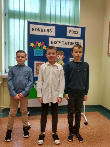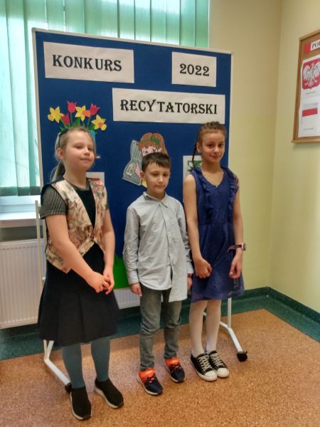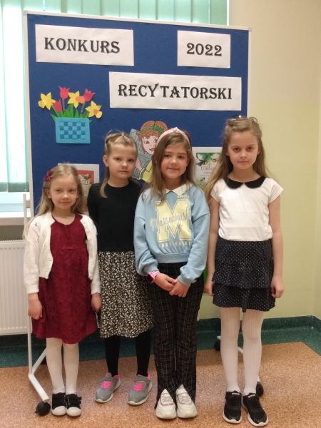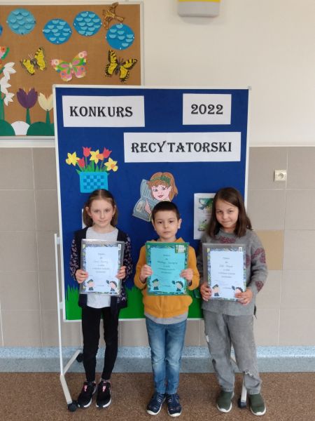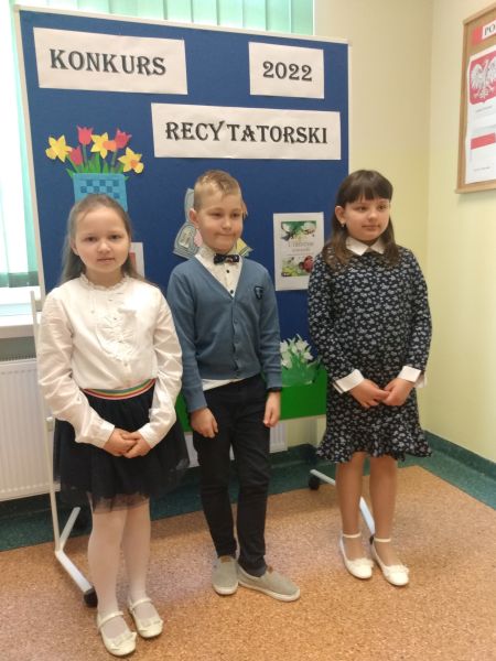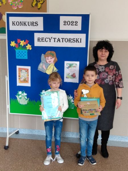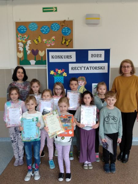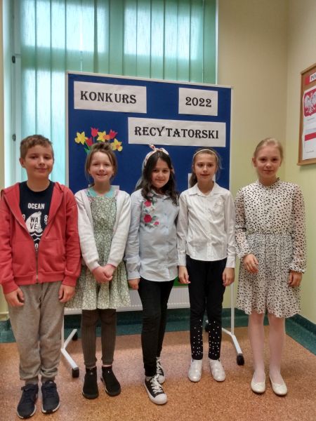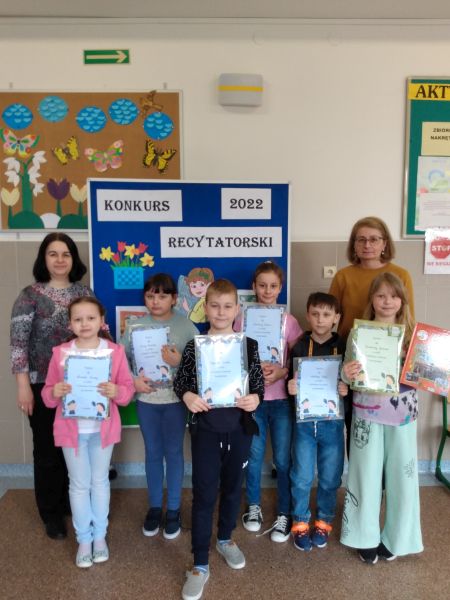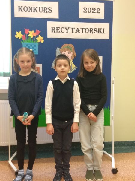 30 marca odbył się Szkolny Konkurs Recytatorski dla klas 1-3. Uczniowie klas młodszych licznie wzięli w nim udział, prezentując wybrane przez siebie utwory poezji dziecięcej. Każdy uczestnik konkursu otrzymał dyplom i drobny upominek, a uczniowie nagrodzeni i wyróżnieni dodatkowo nagrody książkowe. Nagrody i dyplomy wręczyła pani wicedyrektor Elżbieta Soja.