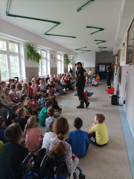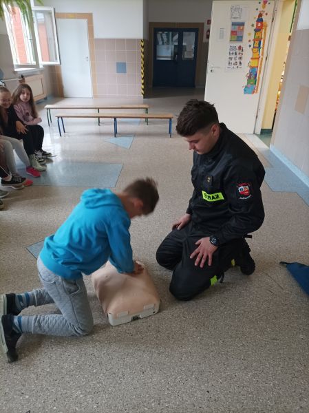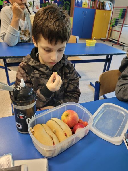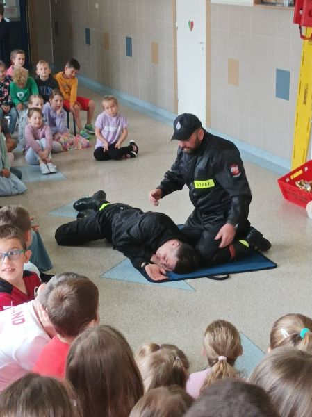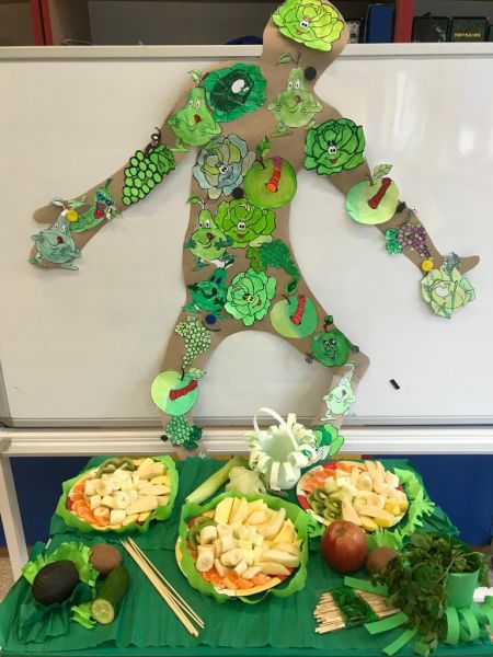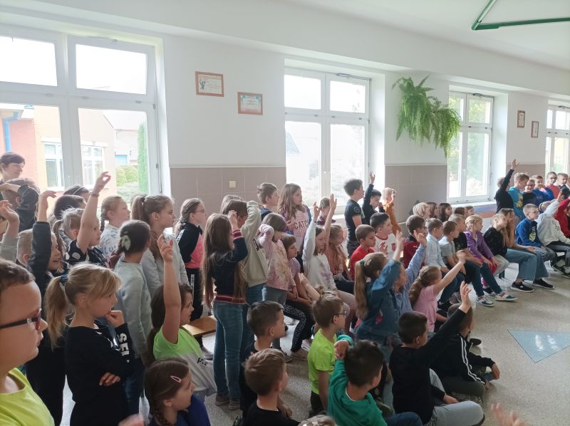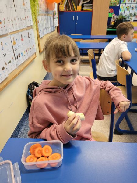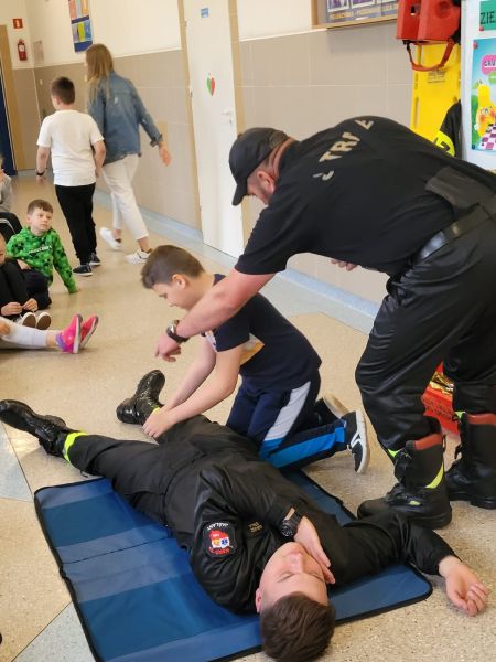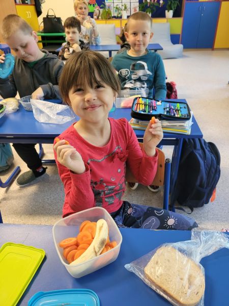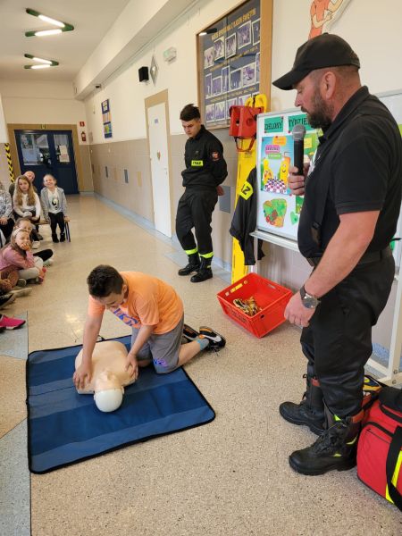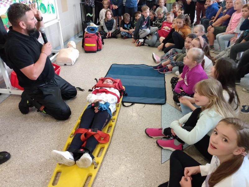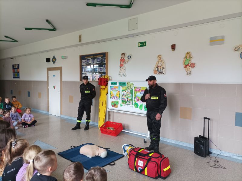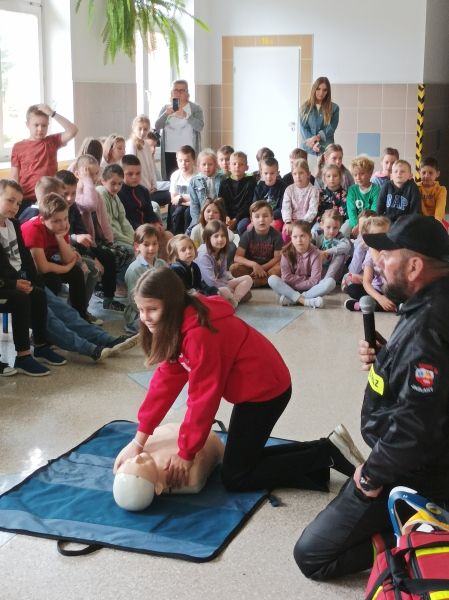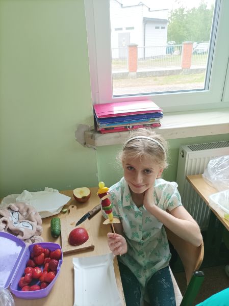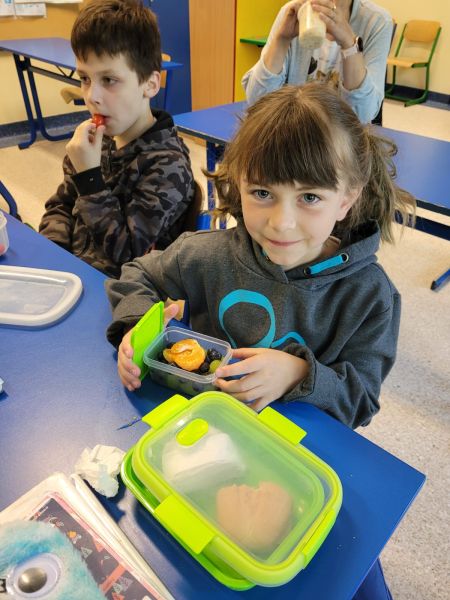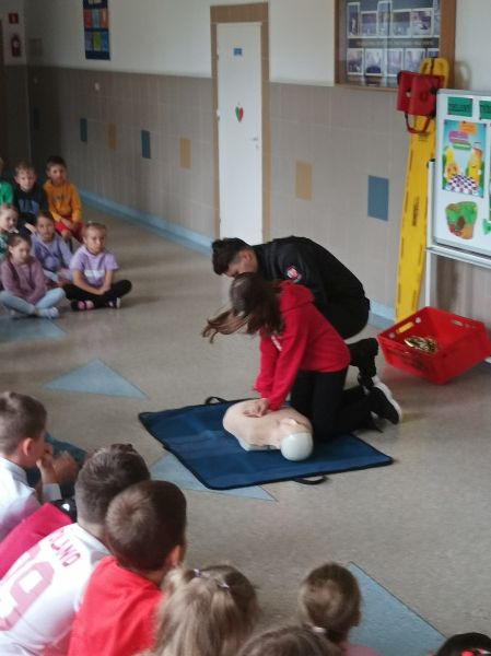 Zielone dni w klasach młodszych promowały zdrowy styl życia i zdrowe odżywianie. W Dniu Dziecka uczniowie klas młodszych przygotowali samodzielnie owocowo- warzywne kanapki, szaszłyki wykorzystując warzywa i owoce w kolorze zielonym i nie tylko. Przyszli ubrani w zielone koszulki, na wybranych lekcjach wyszli na klasowy piknik wokół szkoły. W tym dniu odbyły się także zajęcia ruchowe na świeżym powietrzu. W klasach pierwszych i drugich p.dietetyk Ewelina Jamróz prowadziła zajęcia edukacyjne dotyczące piramidy żywieniowej oraz komponowania zdrowego pierwszego i drugiego śniadania. Na zajęciach sportowych w wybranych klasach uczniowie ćwiczyli na torze przeszkód, który przygotowała p. Alicja Kwaśnik oraz p. Beata Kramek. W dniu 2 czerwca wszystkie klasy uczestniczyły w ciekawym pokazie pierwszej pomocy prowadzonym przez strażaków z OSP w Jaślanach p. komendanta Marka Czerwa i p. Łukasza Stalę. Uczniowie mieli okazję ćwiczyć pierwszą pomoc na specjalnym fantomie, a także uczyli się zasad postępowania przy omdleniu, zakrztuszeniu. Wszyscy uważnie obserwowali postępowanie w sytuacjach zagrażających życiu człowieka.