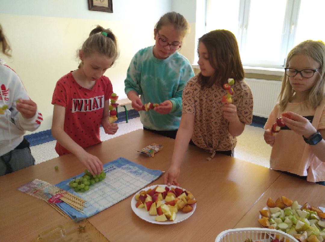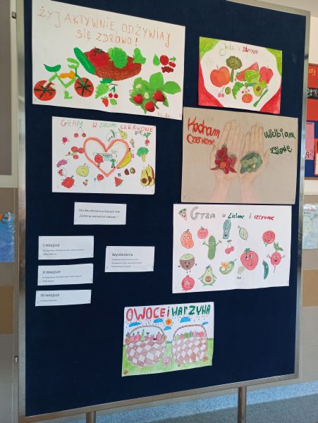 W dniach 30.05-2.06.2022r były organizowane w szkole ,,Dni dla zdrowia”. Odbyły się imprezy prozdrowotne, w których czynnie uczestniczyli uczniowie klas 4-8 wraz z nauczycielami. Hasło tygodnia to: ,,GRAM W CZERWONO -ZIELONE”. Przedstawiciele klas brali udział w konkursach z nagrodami: układania wierszy, rymowanek związanych z tematyką ,,Czerwono-zielone owoce i warzywa”, w konkursie matematycznym dla klas 5 ,,Żyj zdrowo”, konkursie dla klas 4 i 5 z języka angielskiego ,,Czerwono-zielony koktajl ", w międzyklasowym konkursie plastycznym o zdrowym odżywianiu-,,Gram w czerwono-zielone”.