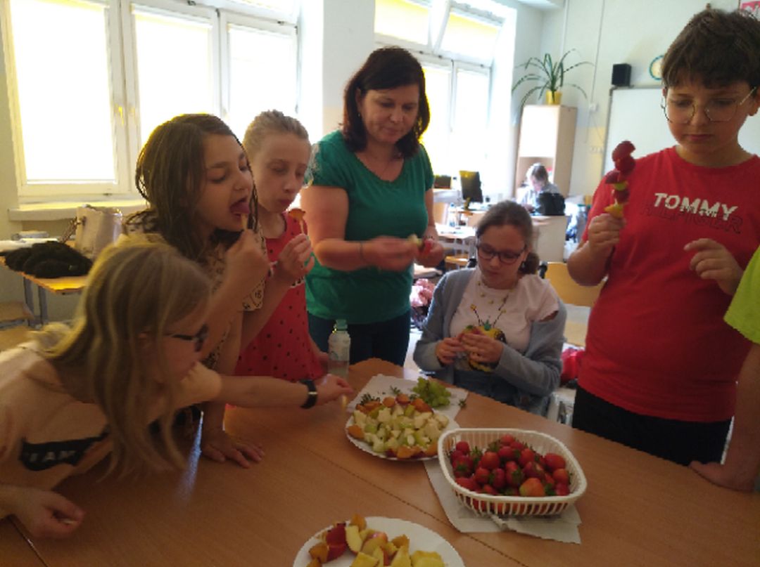 Członkowie PCK przy SP 11 w Mielcu wygłosili przez radiolę pogadankę: ,, Czerwono-zielone owoce i warzywa”.