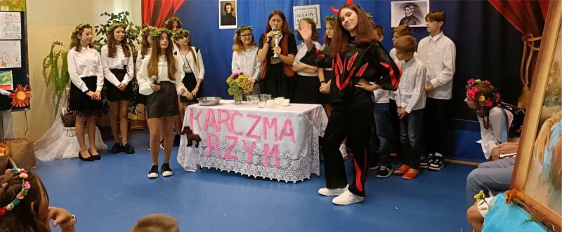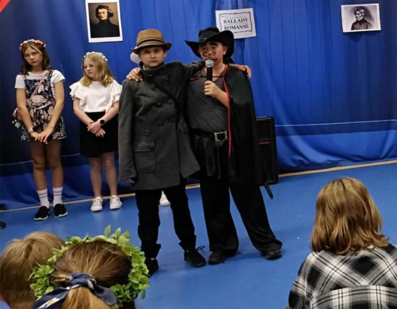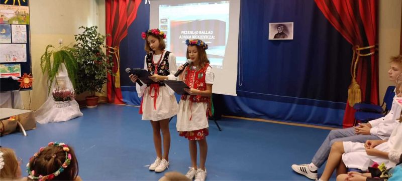 To niezwykłe przedsięwzięcie stało się wielkim świętem zarówno dla uczniów, rodziców, nauczycieli, jak i zaproszonych gości. Przygotowana przez uczniów prezentacja multimedialna przybliżyła wszystkim sylwetkę i twórczość Adama Mickiewicza - naszego wieszcza narodowego. Z kolei klasa 5d przedstawiła inscenizację znanej ballady pt. „Powrót taty” zaprezentowaną pod kierunkiem wychowawcy - pani Moniki Kuroń. Dopełnieniem przesłania utworu stała się piosenka – „Żeby szczęśliwym być” w zaśpiewana przez Nikolę i Paulinę z 5 d - które przygotowała pani Ewa Gola. Rytmy tańca towarzyskiego w przepięknym wykonaniu Gabrysia i Nikoli przeniosły publiczność do karczmy Rzym, gdzie mogliśmy poznać historię o sprytnym panu Twardowskim, który chciał samego diabła przechytrzyć. Chodzi oczywiście o balladę „Pani Twardowska” – występ przygotowany przez uczniów klasy 6b pod opieką wychowawcy - pani Magdaleny Rumak - Markowskiej.