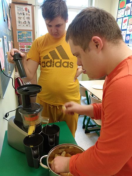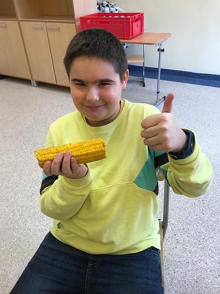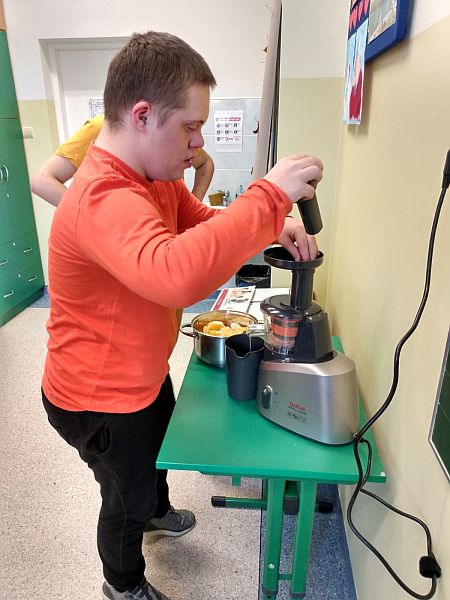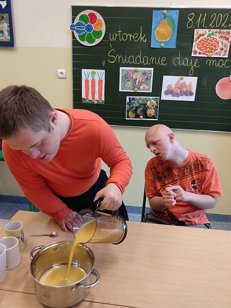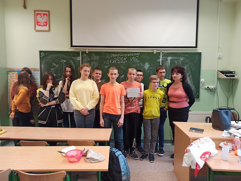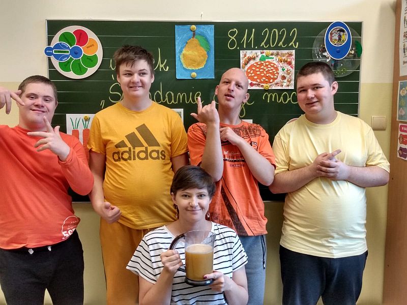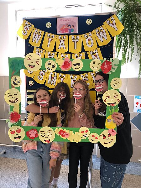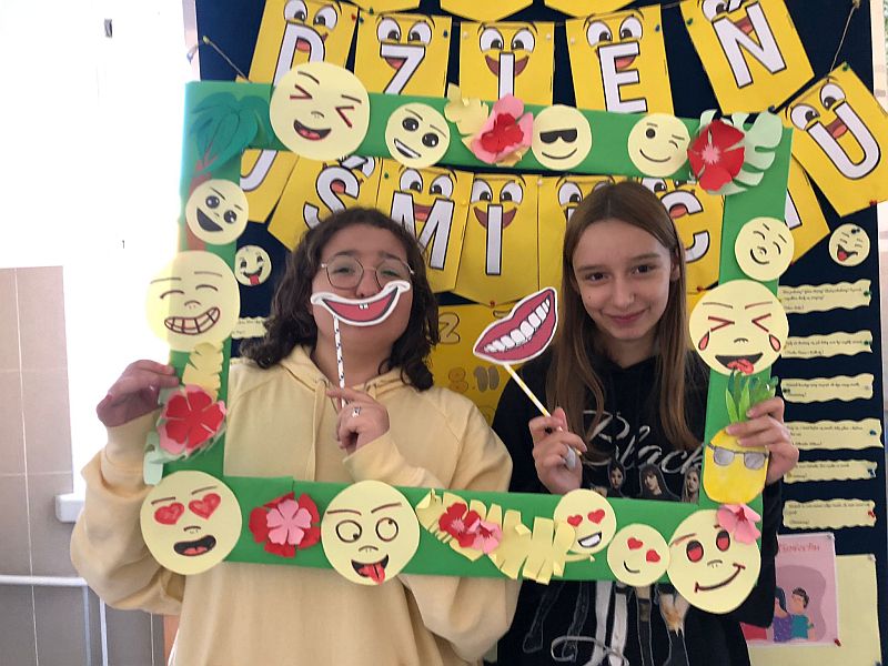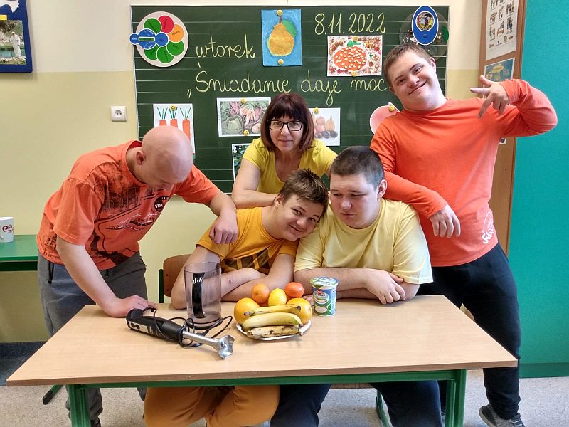 W listopadzie kolejny raz przystąpiliśmy do ogólnopolskiej akcji „Śniadanie daje moc”, który połączyliśmy z żółtym dniem uśmiechu. Ubrani w żółte koszulki spożywaliśmy drugie śniadania przygotowane samodzielnie z wykorzystaniem owoców i warzyw i nie tylko. Uczniowie klas młodszych obejrzeli filmiki edukacyjne o walorach zdrowotnych warzyw i owoców oraz przypomnieli sobie budowę piramidy zdrowia. Następnie w towarzystwie kolegów i koleżanek spożyliśmy drugie śniadania. Dzień ten przebiegał pod hasłem „uśmiechu”, którego symbolem jest żółta buźka. Wielu uczniów pozowało do wspólnych wesołych zdjęć, które wykonali w żółtej ozdobnej ramce. Wesoły nastrój i uśmiech oraz dobry humor towarzyszył nam przez cały pobyt w szkole. Dzieliliśmy się miłym uśmiechem zarówno podczas lekcji, jak i przerw na szkolnych korytarzach. Zachęcamy aby uśmiech gościł na twarzach codziennie i dawał wszystkim poczucie radości i zadowolenia. Pamiętajmy, że śmiech to zdrowie