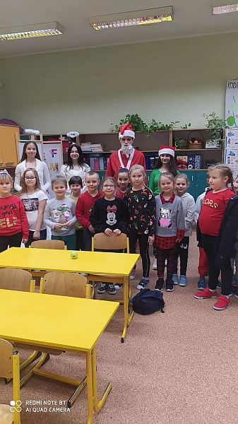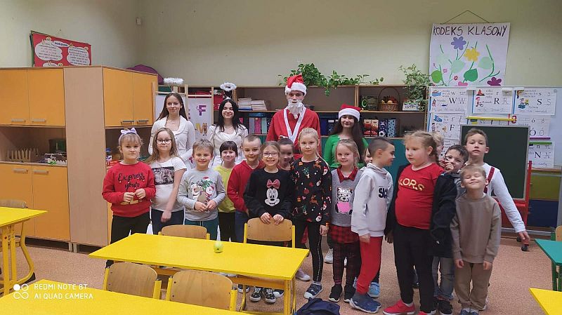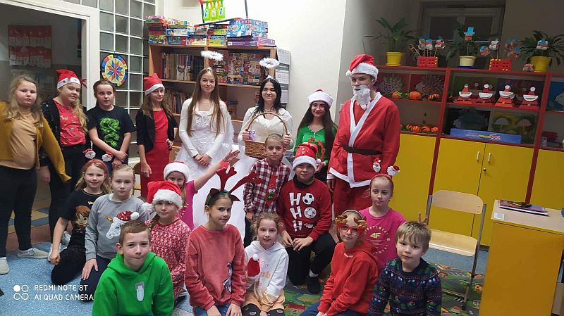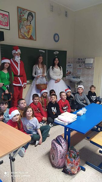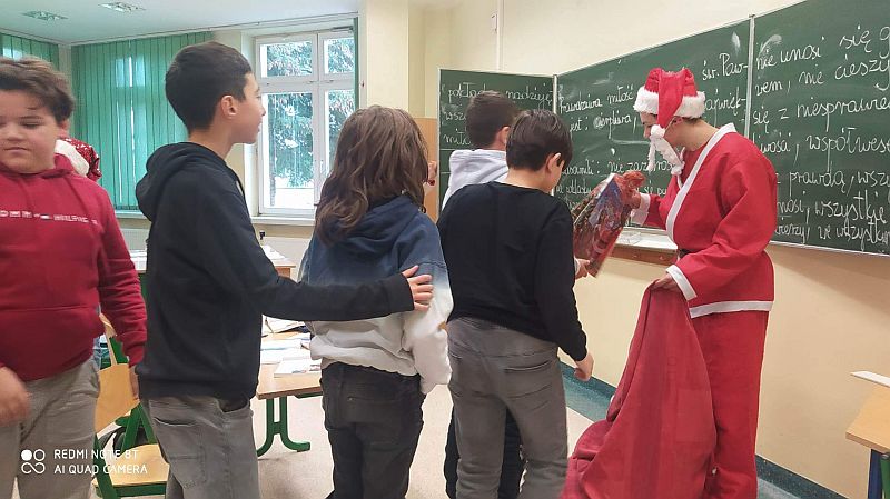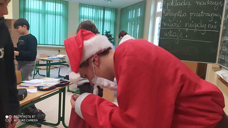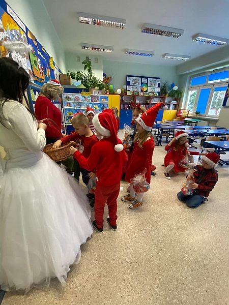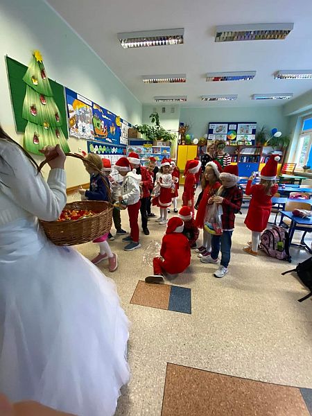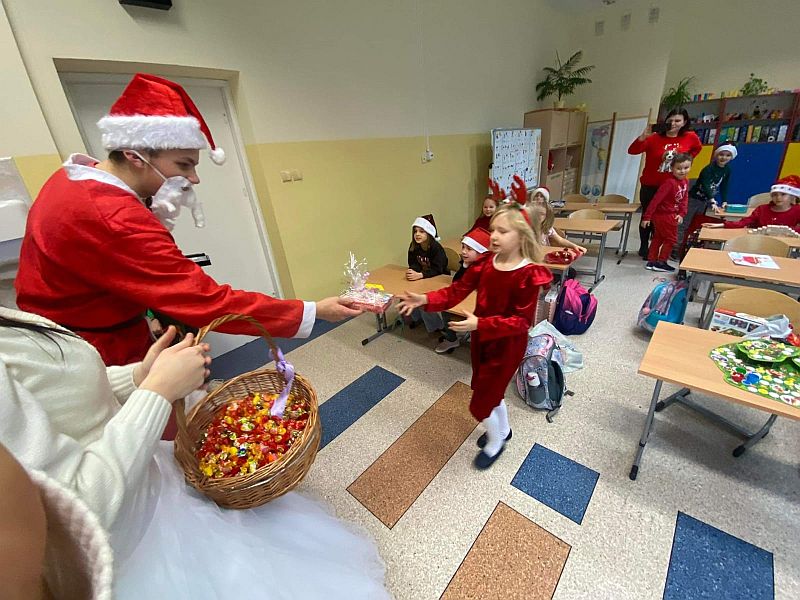 6 grudnia to dzień, na który czekają wszystkie dzieci. Mikołajki to nie tylko prezenty i luźniejszy dzień w szkole. To także wyjątkowa oprawa, niecodzienny klimat i odrobina magii. W tym dniu nasi uczniowie czują się ważni i są dla siebie życzliwi. Dzięki świętowaniu całą klasą zespół integruje się, a wszyscy na chwilę zapominają o problemach. Mikołajkowy czas to moment radości, uśmiechu, dzielenia się szczęściem z innymi. Mikołajki w naszej szkole już na stałe wpisały się w kalendarz wydarzeń. W tym roku również nie zabrakło radości i uśmiechów. Samorząd Uczniowski w strojach aniołków i Świętego Mikołaja witał od progu uczniów słodkim cukiereczkiem. Wszyscy uczniowie ubrani byli dziś w stroje z akcentem mikołajkowym. Był również Święty Mikołaj, anioły i pomocny Elf, którzy rozdawali prezenty, przygotowane wzajemnie przez uczniów. Ponadto przedstawiciele Samorządu Uczniowskiego przygotowali dla uczniów super niespodziankę. W każdej klasie została rozlosowana nagroda niespodzianka. A uczennice z klasy 7a zaprezentowały na korytarzu swój talent taneczny! Magia świąt zawitała tego dnia w progi naszej szkoły.