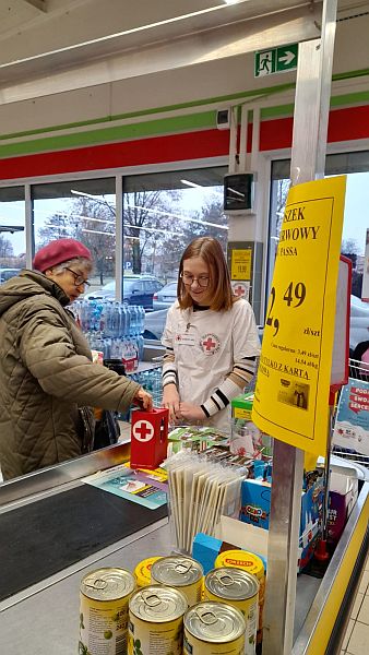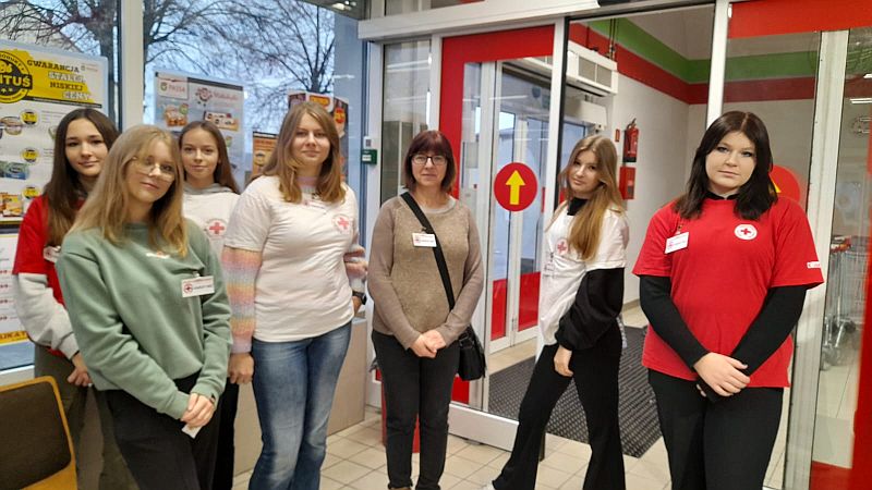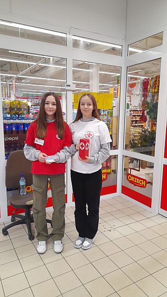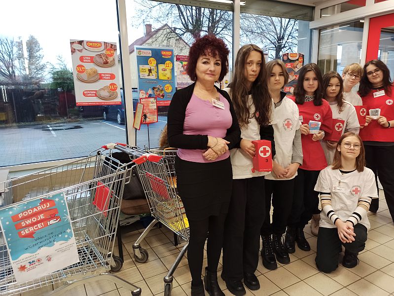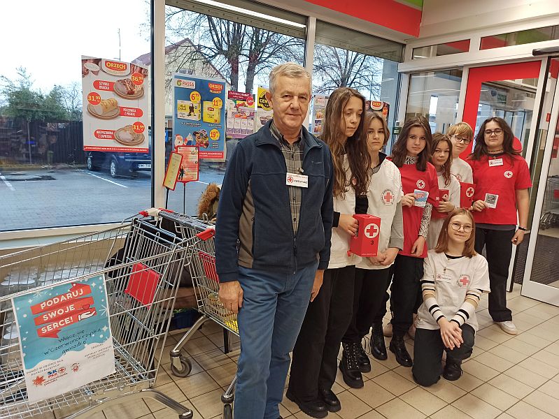 Dnia 10.12.2022r Szkolne Koło PCK przy SP nr 11 w Mielcu brało udział w Przedświątecznej zbiórce pieniężnej i żywnościowej pod hasłem ,,Podaruj swoje serce" organizowanej przez Oddział Rejonowy PCK w Mielcu. Miejscem akcji był sklep ORZECH , ul. Wolności 164. Uczniowie z klas 7a, 8c, 8b pod opieką p.Teresy Hawron-Cygan, p.Marty Woźniak, p.Beaty Niezgody,przedstawiciela Oddziału Rejonowego PCK w Mielcu Franciszka Sajek zebrali kwotę 1751,85 zł oraz 10 reklamówek żywności. Produkty jeszcze przed świętami trafią do najbardziej potrzebujących z naszej szkoły. Dziękujemy darczyńcom.
