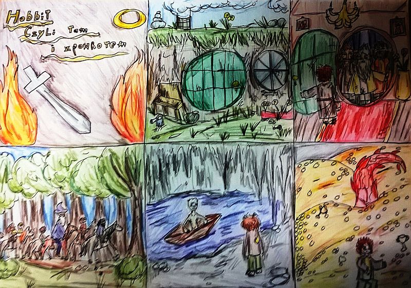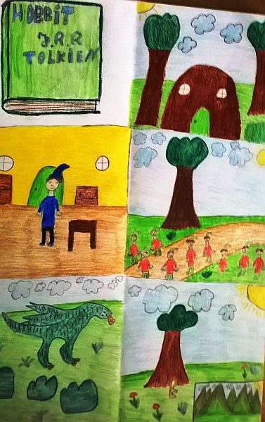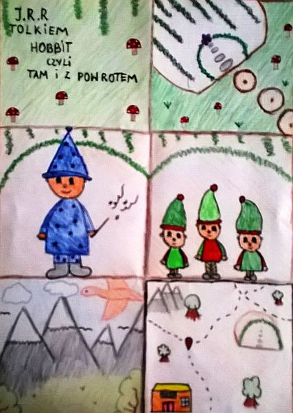 Uczniowie klas szóstych zainspirowani powieścią J.R.R. Tolkiena „Hobbit, czyli tam i z powrotem ”, na lekcjach plastyki wykonali interesujące prace plastyczne w których przedstawili wyprawę Bilba Bagginsa i jego przyjaciół do Samotnej Góry. Prace powstały w ramach ogólnopolskiej akcji oraz realizacji projektu z plastyki „Cała Polska czyta dzieciom”.