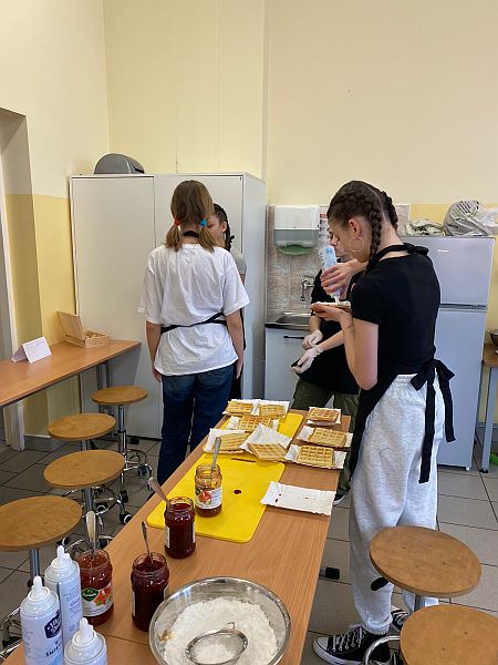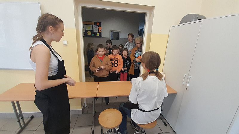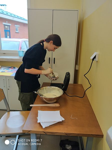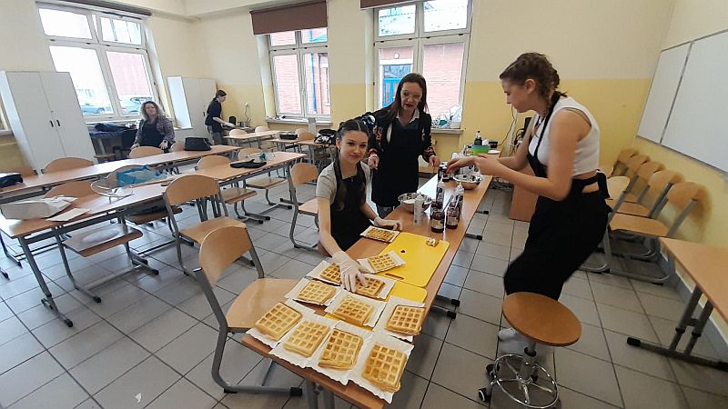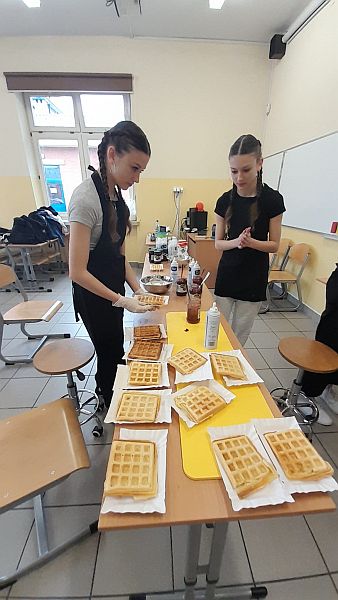 Uczennice klasy 7d pod nadzorem opiekunów Samorządu Uczniowskiego- pani Karoliny Ziobroń i pani Katarzyny Kuzary- założyły fartuchy, podkasały rękawy i wzięły się za pieczenie pysznych gofrów. Chętnych na słodką przekąskę nie brakowało, a wręcz pojawiły się głosy, aby taka impreza pojawiła się na stałe w szkolnym grafiku wydarzeń. Udział w programie „Laboratoria przyszłości” to świetnie wyposażone pracownie w naszej szkole. Dzięki niemu zajęcia szkolne są atrakcyjniejsze i pozwalają uczniom rozwijać zainteresowania nie tylko na lekcjach techniki i w ramach innych obowiązkowych zajęć edukacyjnych, lecz także w ramach zajęć pozalekcyjnych, kół zainteresowań i innych form rozwijania umiejętności.
