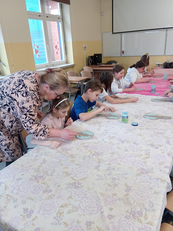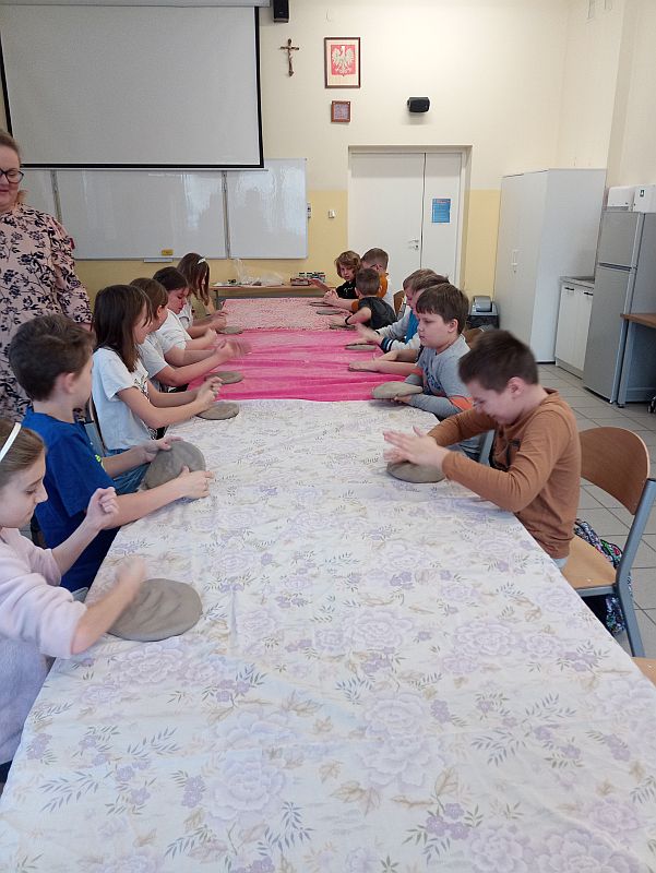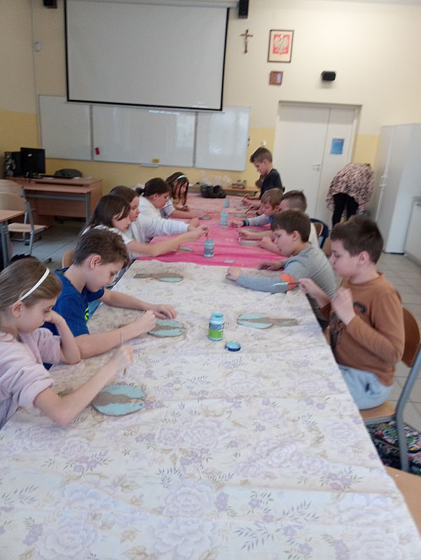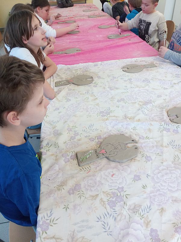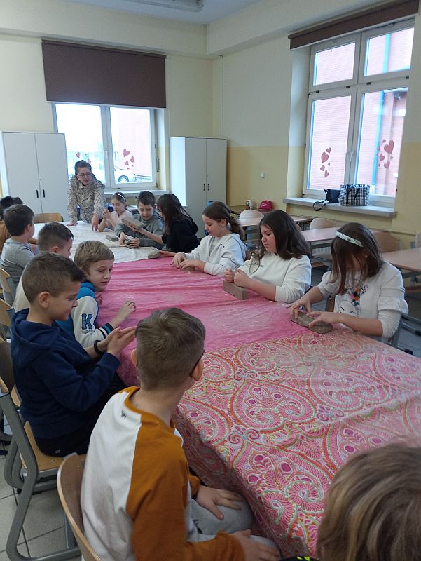 Dnia 9 marca 2023 roku klasy 5c i 4a uczestniczyły w warsztatach rękodzieła - ceramiki artystycznej zorganizowanych przez Pracownię ceramiczną Agi Krzyżowskiej z Woli Mieleckiej. Zajęcia odbyły się na terenie naszej szkoły pod opieką nauczycieli: Marii Gurby, Ewy Czerwonki, Magdaleny Jaskulskiej. Celem dwugodzinnych zajęć było: poznanie techniki pracy z gliną oraz poszczególnych etapów powstawania wyrobów ceramicznych, rozwijanie wyobraźni, kreatywności oraz artystycznych zainteresowań uczniów. Pod kierunkiem Pani Agi Krzyżowskiej dzieci tworzyły figury anioła - począwszy od otrzymania kawałka gliny, poprzez formowanie postaci, malowanie i zdobienie. Wykonane prace – anioły z motywami roślinnymi, ozdobione własnym imieniem uczestnicy otrzymają na własność po wypaleniu w profesjonalnym piecu ceramicznym. Warsztaty upłynęły w miłej i twórczej atmosferze.