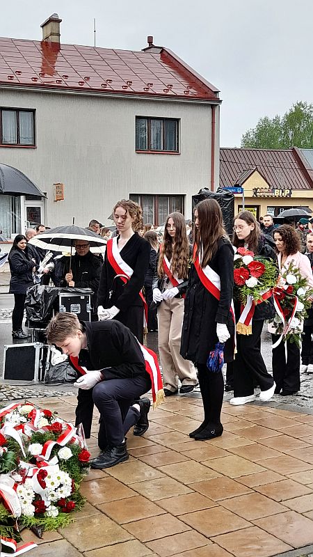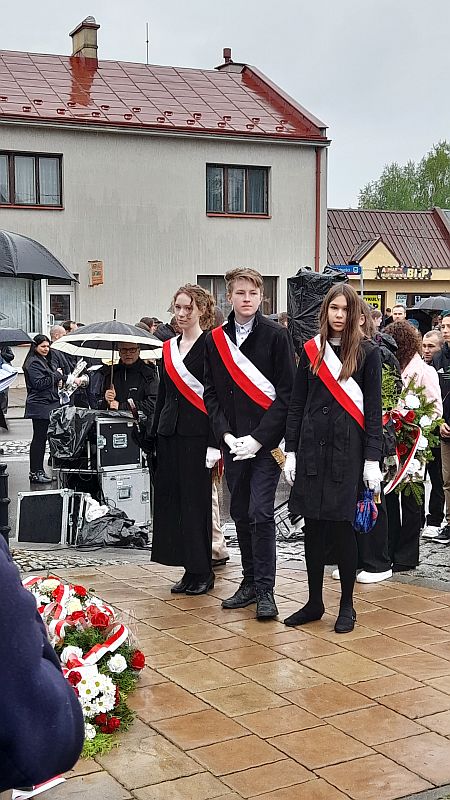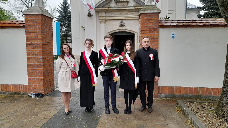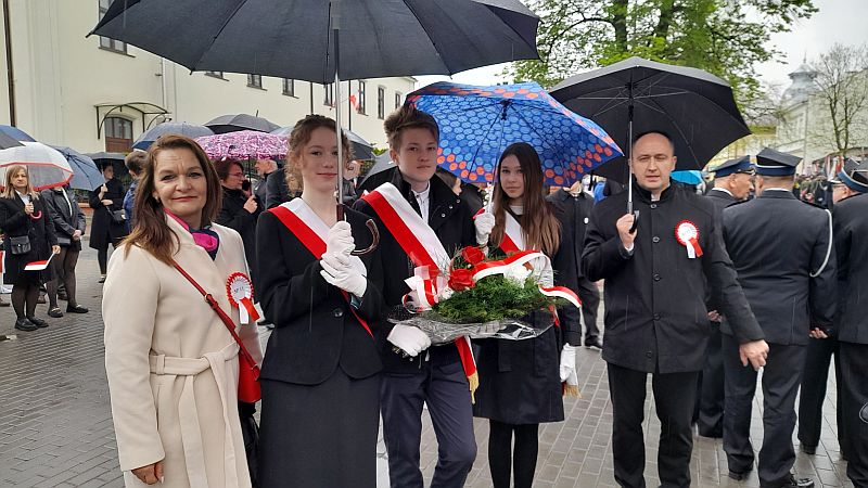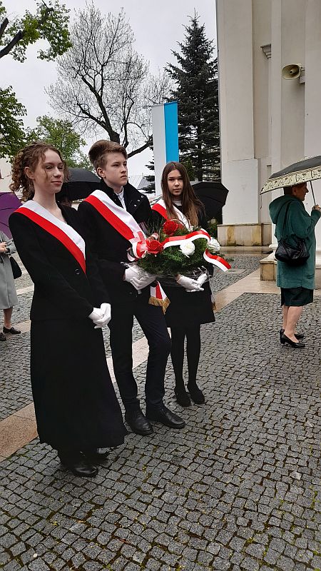 W dniu 3 maja 2023 r. delegacja naszej szkoły wzięła udział w uroczystościach Narodowego Święta Konstytucji 3 Maja zorganizowanych przez władze powiatu mieleckiego oraz miasta Mielca. Przedstawiciele samorządu uczniowskiego z klasy 7d Klara Wawrów, Julia Kisiel i Wojciech Pacia pod opieką pani Beaty Niezgoda oraz pana Andrzeja Majewskiego po Mszy Świętej w intencji Ojczyzny w Bazylice Mniejszej pw. św. Mateusza udali się w pochodzie wielu lokalnych organizacji pod pomnik Jana Kilińskiego, zwany również Pomnikiem Wolności, gdzie po odśpiewaniu hymnu państwowego złożyli kwiaty.