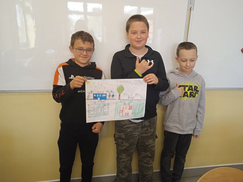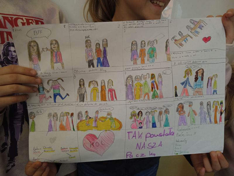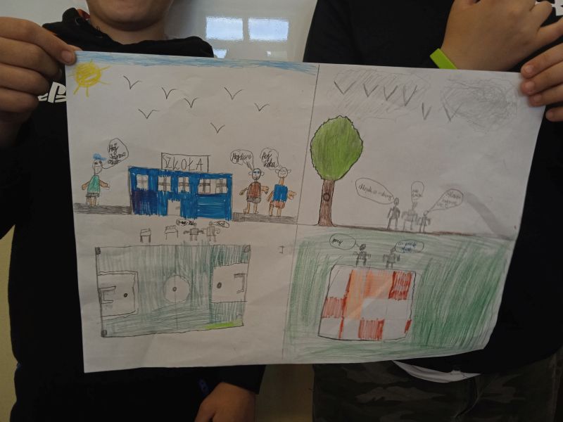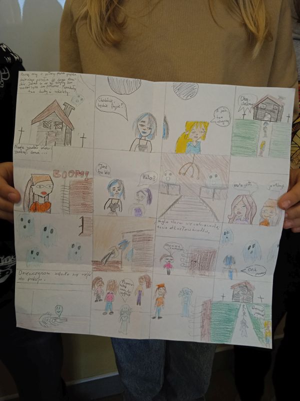 Uczniowie klasy 4B, podążając śladami słowiańskich wojów - bohaterów komiksu „Kajko i Kokosz” Janusza Christy, stworzyli własne propozycje komiksowych historyjek. Pamiętając, że najważniejszy w tym wszystkim jest pomysł, sumiennie i pracowicie dążyli do jego realizacji. Praca grupowa okazała się owocna, gdyż na lekcji języka polskiego nadszedł czas, by „puścić wodze wyobraźni”.