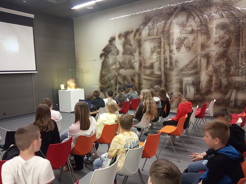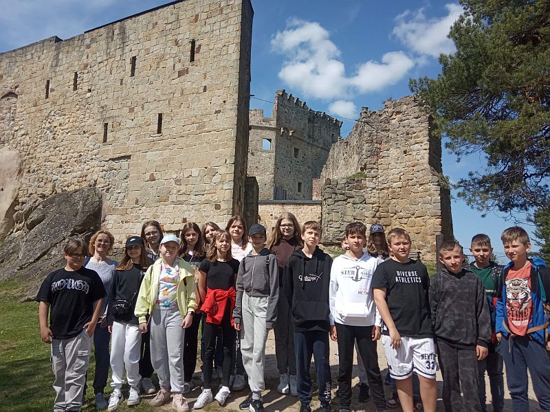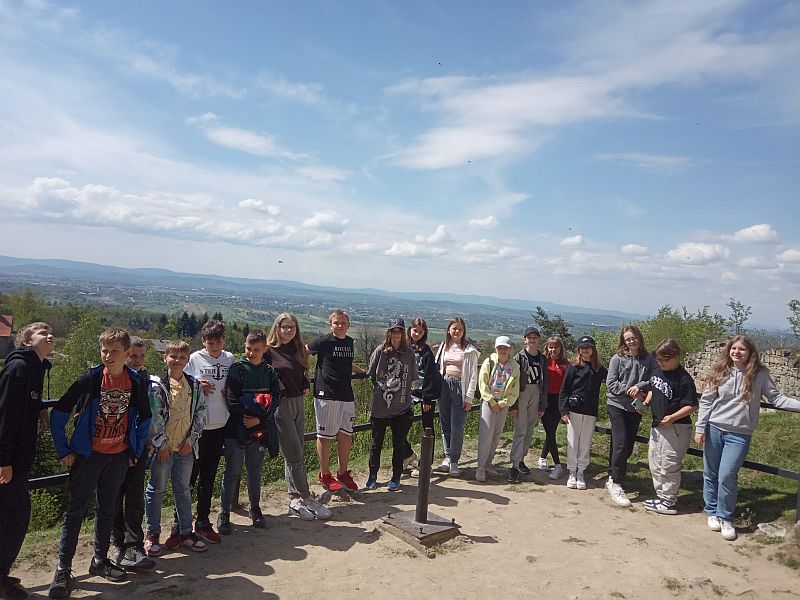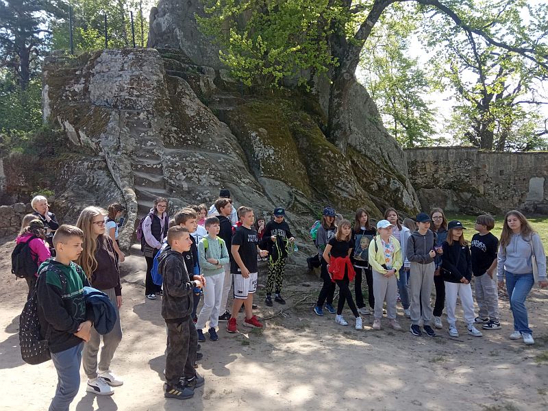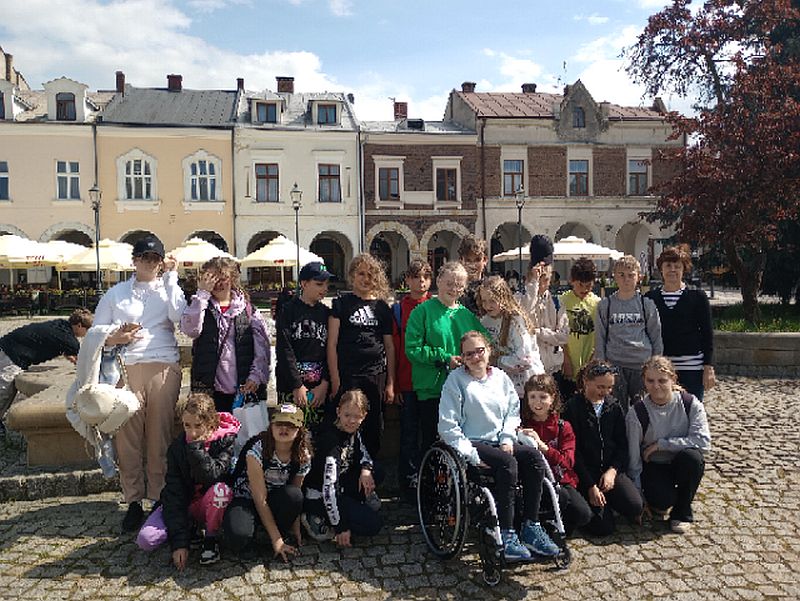 W dniu 12.05.23 r., w piękny piątkowy dzień, klasy 5 d i 5 a wraz z wychowawcami ( p. Moniką Kuroń, p. Krystyną Antonów i p. Małgorzatą Rybą) wybrały się na wycieczkę szkolną. Zaczęliśmy od zwiedzenia z przewodnikiem Zamku Kamieniec w Odrzykoniu koło Krosna, w którym to rozgrywała się akcja głośnej „Zemsty” A. Fredry. Następnie przejechaliśmy do Centrum Dziedzictwa Szkła w Krośnie, gdzie uczestniczyliśmy w bardzo ciekawych warsztatach w słynnej Hucie Szkła w tym mieście. Mieliśmy okazję poznać historię tego obiektu i zobaczyć różnorodne wyroby ze szkła, a nawet sami wykonaliśmy nasz własny rysunek na szkle – niepowtarzalną pracę artystyczną na pamiątkę pobytu w „fabryce szkła”. Po krótkim spacerze ulicami miasta wróciliśmy do domu, wzbogaceni o nowe przeżycia i doświadczenia.