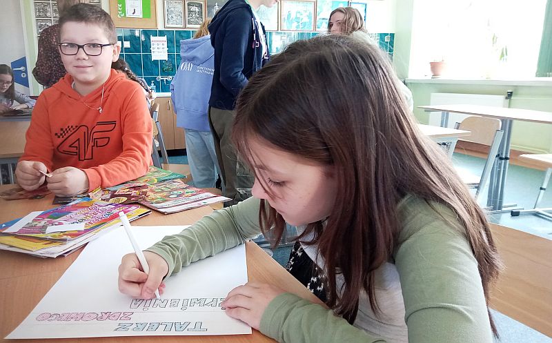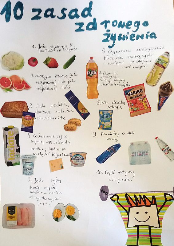 W ramach projektów o zdrowym odżywianiu realizowanych na terenie naszej szkoły w poniedziałek 24 kwietnia 2023 roku uczniowie z kl. 7a, 5c na zajęciach plastycznych wzięli udział w warsztatach z dietetykiem i wykonali interesujące prace o tematyce zdrowotnej. Warsztaty nauczyły uczestników, jak zadbać o zbilansowaną dietę, zyskać zdrowie oraz dobre samopoczucie.