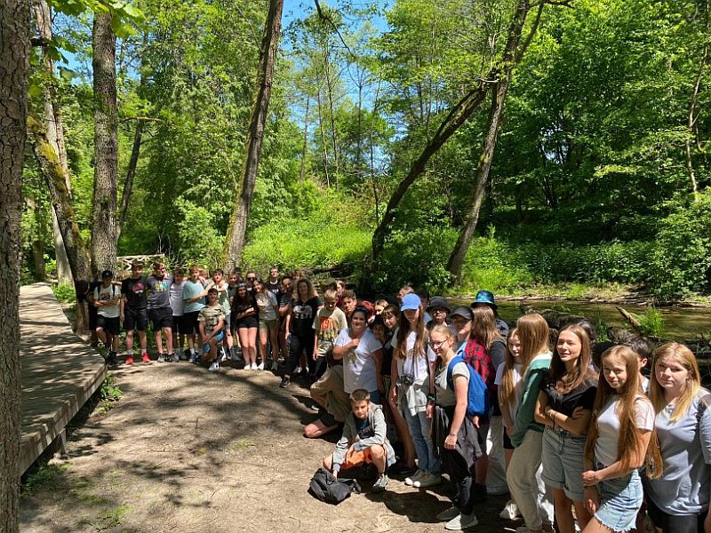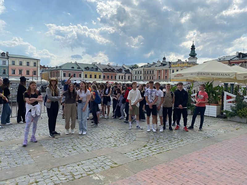W dniu 30 maja 2023r. uczniowie z klas 8a, 8b, 8e, wybrali się na ostatnią wspólną wycieczkę. Fascynująca przygoda rozpoczęła się w Zamościu. Pierwszym punktem naszej wycieczki był Ogród Zoologiczny im. Stefana Milera, gdzie mieliśmy okazję zobaczyć egzotyczne gatunki zwierząt ze wszystkich kontynentów. Obserwowaliśmy pokazowe karmienie krokodyli oraz guźców. Następnie udaliśmy się na zamojski rynek, gdzie razem z przewodnikiem podziwialiśmy zabytki miasta, które znajdują się od prawie trzydziestu lat na liście światowego dziedzictwa UNESCO. W dniu 31 maja cała grupa wyruszyła na fascynującą przygodę kajakową. Wycieczka miała na celu odkrycie uroków przyrody, opanowanie umiejętności kajakarskich oraz spędzenie aktywnie czasu na świeżym powietrzu. Rozpoczęliśmy naszą przygodę nad brzegiem malowniczej rzeki Wieprz. Po krótkim wprowadzeniu do technik kajakowych i omówieniu zasad bezpieczeństwa, wszyscy uczestnicy założyli kamizelki asekuracyjne i wsiedli do kajaków. Rzeka wiodła nas przez malownicze tereny. Wycieczka była również doskonałą okazją do nawiązania nowych przyjaźni i zacieśnienia więzi w grupie. Wszyscy byliśmy zjednoczeni wspólnym celem, a kajakowanie wymagało od nas współpracy i wzajemnego wsparcia. W trakcie spływu mieliśmy wiele okazji do rozmów i śmiechu, co sprawiło, że nasza eskapada była nie tylko aktywna, ale również pełna radości. Po kilku godzinach intensywnego kajakowania dotarliśmy do miejsca, gdzie kończyła się nasza wyprawa. Byliśmy zmęczeni, ale pełni satysfakcji z naszych osiągnięć. Wysiadając z kajaków, czuliśmy ogromną dumę z tego, że pokonaliśmy trudności i odnieśliśmy sukces. Kolejnym punktem wyjazdu było wspólne ognisko, podczas którego nie zabrakło śpiewu i tańca. Ostatni dzień wycieczki 1 czerwca upłynął pod znakiem atrakcji związanych Roztoczańskim Parkiem Narodowym. Udaliśmy się do Rezerwatu Czartowe Pole i Rezerwatu Szum, gdzie spacerowaliśmy ścieżką dydaktyczno-przyrodniczą nad Tanwią, podziwiając wspaniałe widoki. Wspólnie spędzony czas umocnił więzi między nami, a także pozwolił na zdobycie nowych doświadczeń i wspomnień. Nasza wycieczka była niezwykłą przygodą, która dostarczyła nam wiele radości. Z pewnością będzie to jedno z tych doświadczeń, o których będziemy pamiętać przez długi czas.