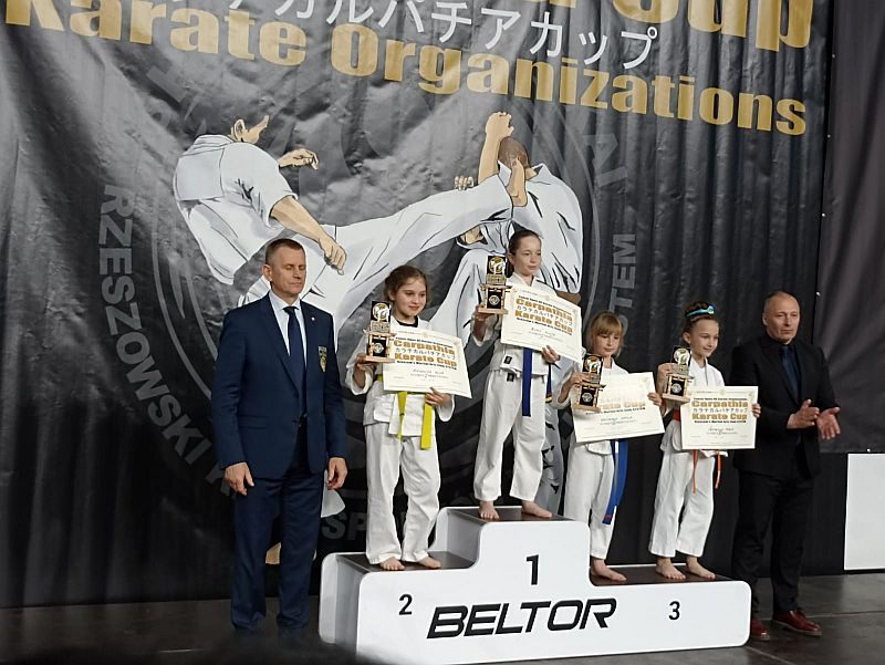 Z radością informujemy, ze uczennica naszej szkoły Kamila Kawiorska z klasy 2b, zawodniczka Mieleckiego Klubu Kyokushin Karate, startując w międzynarodowym turnieju pt. Carpathia Cup, zajęła 3 miejsce w konkurencji Kata oraz 2 miejsce w konkurencji Team Mixed Kata. Turniej odbył się w dniach 27, 28 maja 2023 roku w Hali Sportowej „Podpromie” w Rzeszowie. Obfitował w wiele znakomitych walk i stał na bardzo wysokim poziomie sportowym. Wystartowało w nim 725 zawodników z 9 krajów: Bułgarii, Danii, Gruzji, Węgrzech, Litwy, Norwegii, Szwecji, Ukrainy i Polski. Mielecki Klub Kyokushin Karate reprezentowało 6 zawodników. Organizatorem zawodów był sensei Janusz Wiśniewski prezes RKKS System Rzeszów. Sędzią głównym zawodów był Shihan Remigiusz Karpiński Prezes Polskiej Federacji Shinkyokushinkai.