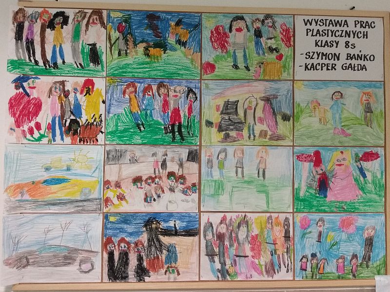 Klasa 8s kończy swoją przygodę w naszej szkole. Postanowiliśmy aktywnie spędzić ten czas. 15 czerwca pojechaliśmy z panią Moniką Dziuk na wycieczkę do Krakowa, który jest ulubionym miastem chłopaków. Zwiedziliśmy Starówkę i Wawel. Spacerowaliśmy Bulwarem Wiślanym odwiedzając wawelskiego smoka. Zjedliśmy pyszne pierogi na Kazimierzu. Atrakcji dopełniła podróż pociągiem. 21 czerwca wybraliśmy się do Samorządowego Domu Kultury na wystawę malarską Dariusza Milczarka. Klasa 8s wielokrotnie brała udział w różnych konkursach plastycznych. Niektóre pokonkursowe prace uczniów znajdują się na tablicy przy sali 82. Ponadto Szymon Bańko i Kacper Gałda spełniali się plastycznie pod okiem pani Ewy Czeczot, która zorganizowała wystawę ich prac na świetlicy szkolnej.
