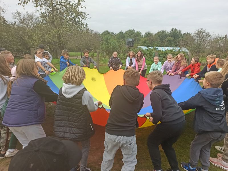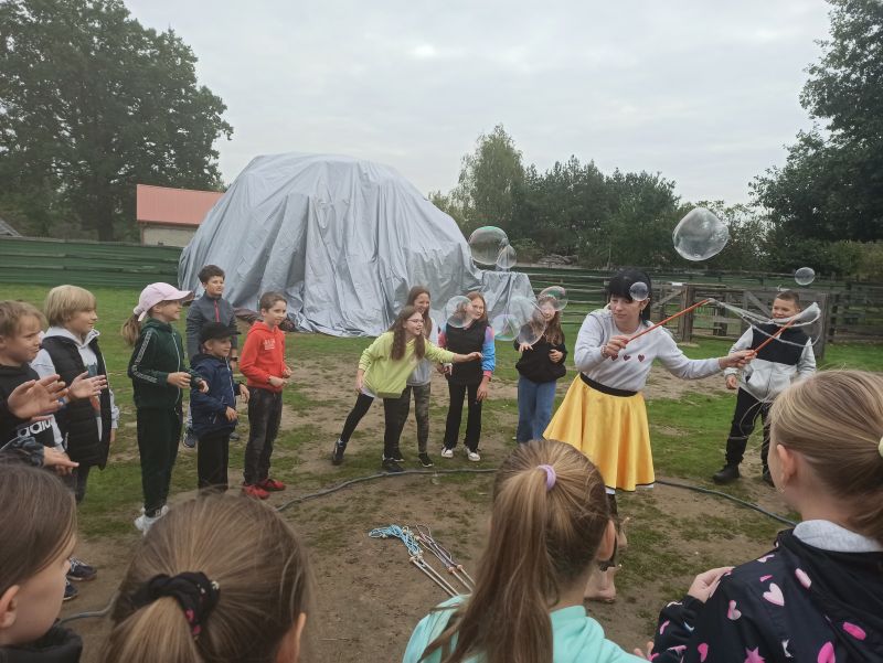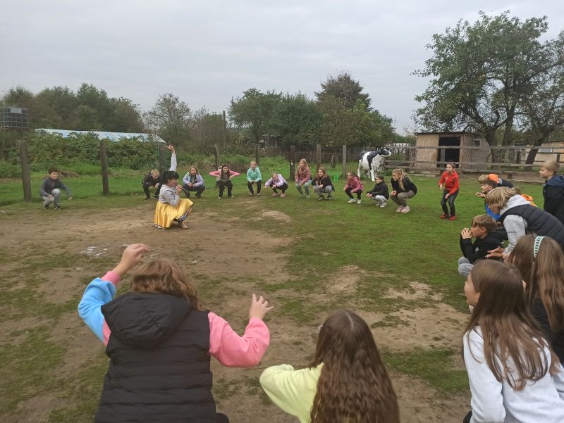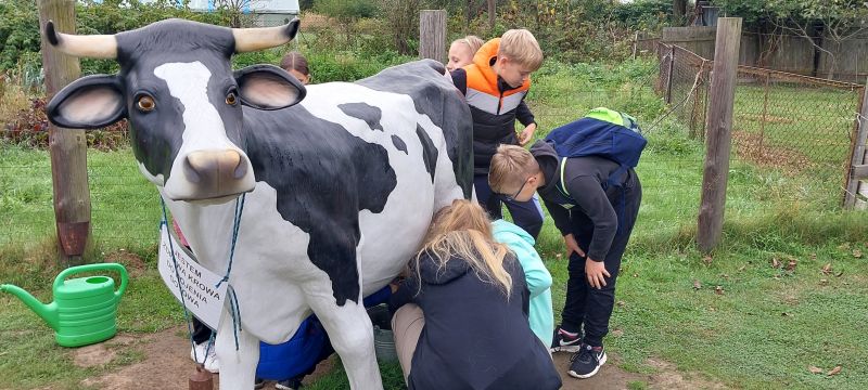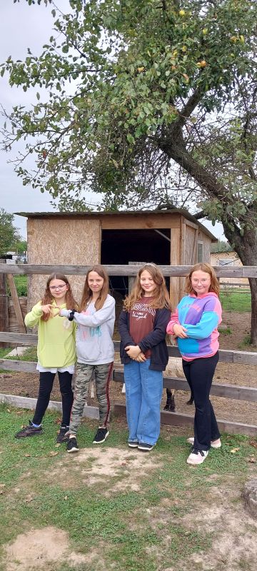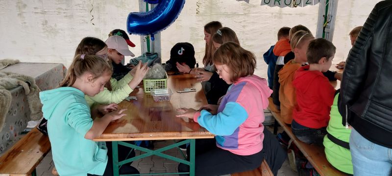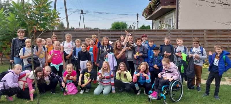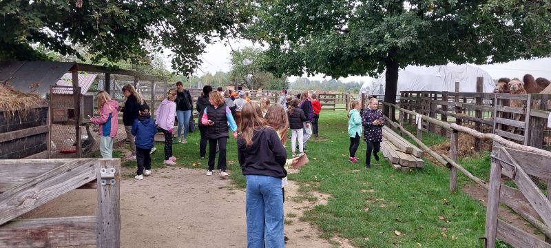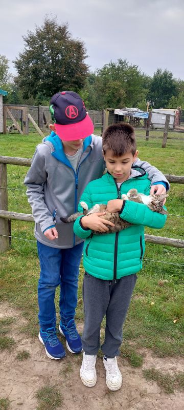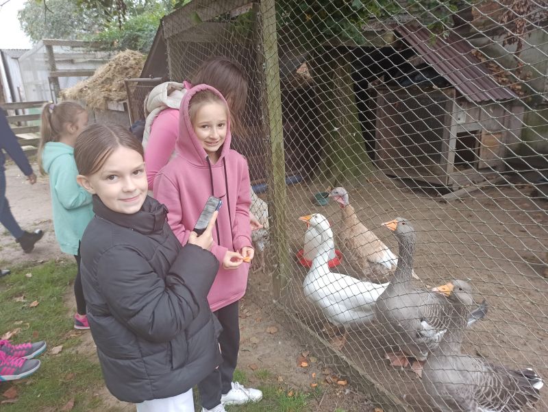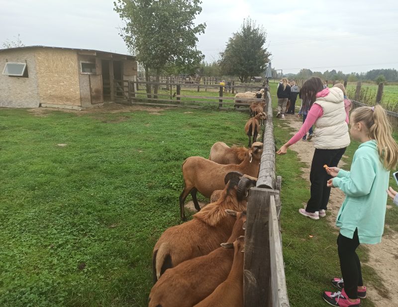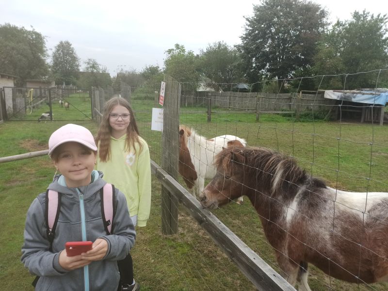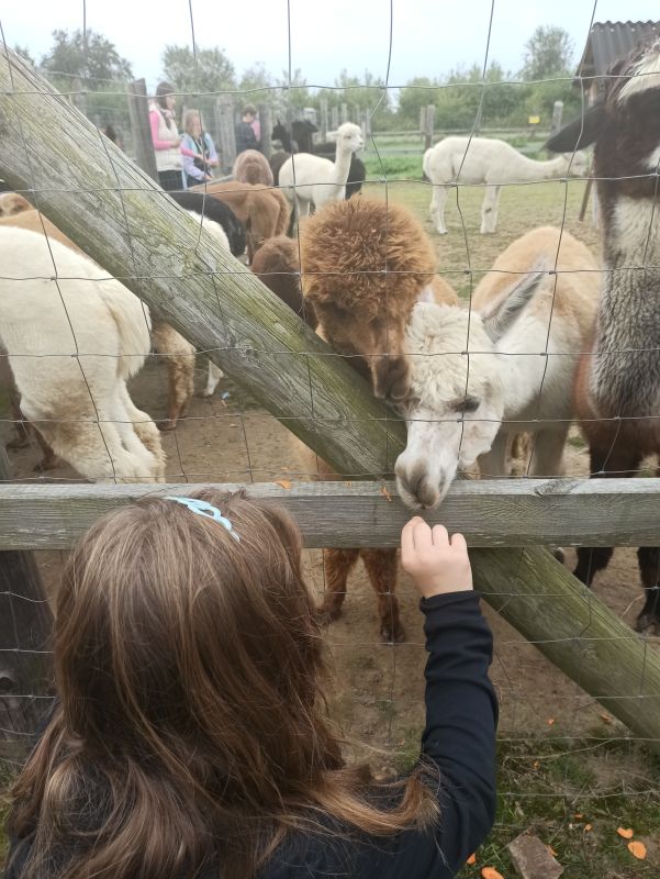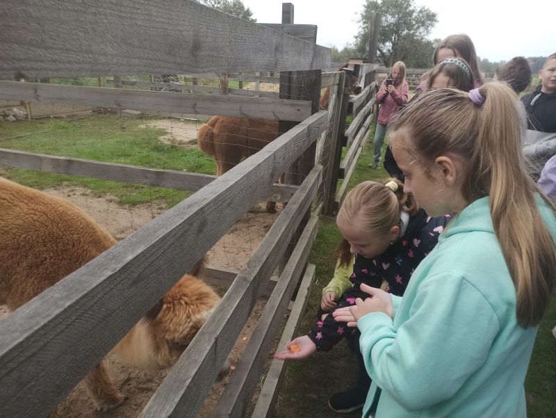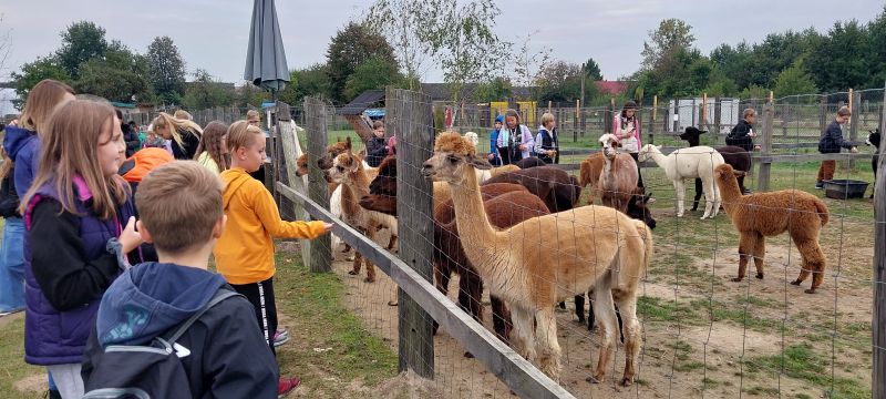 W dniu 2 października 2023r. uczniowie klasy 4a i 4b pod opieką wychowawców, pani Marty Woźniak oraz Moniki Wałek, wybrali się na wycieczkę do Ranczo Alpaka w Woli Baranowskiej. Wycieczkę rozpoczęli od zwiedzania mini zoo, gdzie zobaczyli m.in. wielbłądy, kucyki, pawie, kangury, króliki, strusie, kozy. Największą atrakcją był jednak spacer do zagrody alpak, karmienie ich kawałkami marchewek oraz głaskanie tych przemiłych futrzaków. Kolejnym punktem programu były zabawy przy muzyce prowadzone przez animatorkę oraz pieczenie pysznych kiełbasek przy ognisku. Odbyły się również warsztaty rękodzielnicze, na których każdy własnoręcznie wykonał swoją alpakę. Dodatkową atrakcję stanowił dmuchany plac zabaw oraz zabawy na trampolinie.