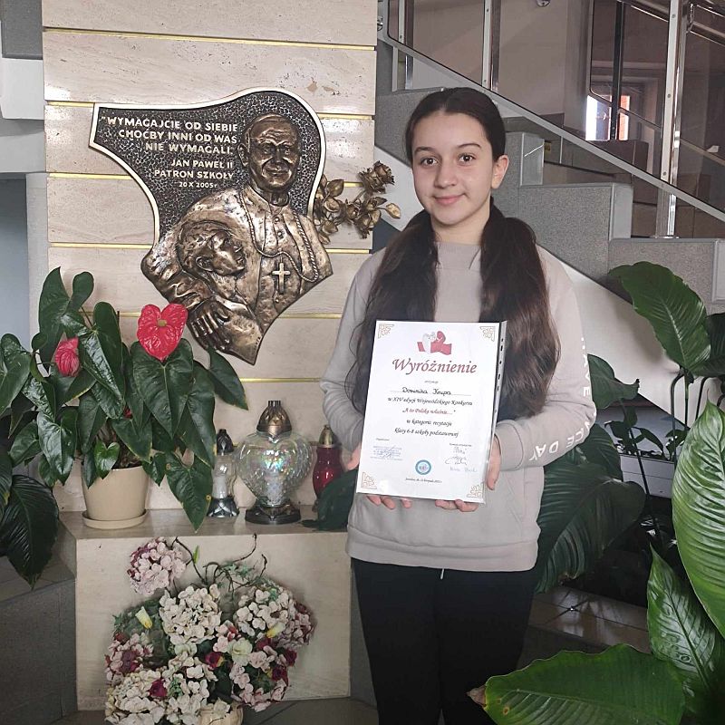 22 listopada 2023r. uczennice naszej szkoły wzięły udział w XIV edycji Wojewódzkiego konkursu „A TO POLSKA WŁAŚNIE…” pod patronatem Podkarpackiego Kuratora Oświaty w Rzeszowie. Celem konkursu było rozwijanie zainteresowań literaturą, zwrócenie uwagi na kulturę żywego słowa oraz doskonalenie umiejętności recytatorskich. Miło nam poinformować o sukcesie wokalnym uczennicy Alicji Leżoń, która zajęła III miejsce. Wyróżnienia w kategorii recytacja otrzymały - Dominika Krupa i Nadia Strokoń.