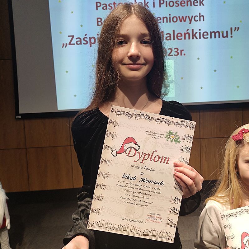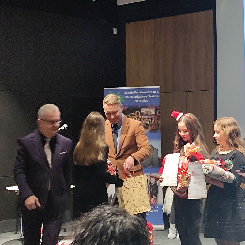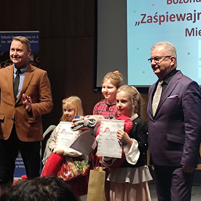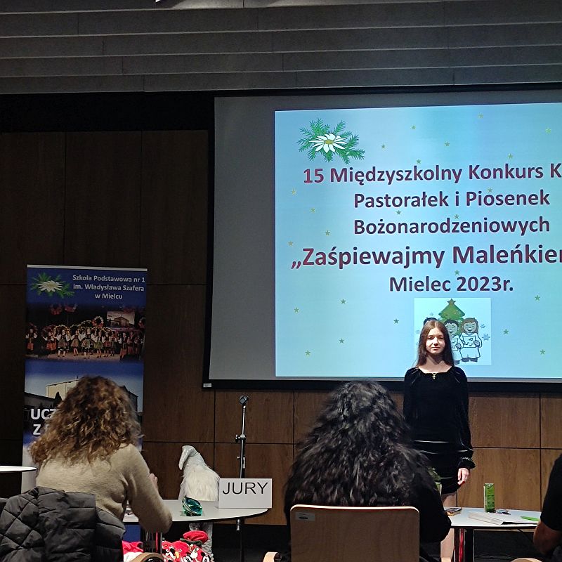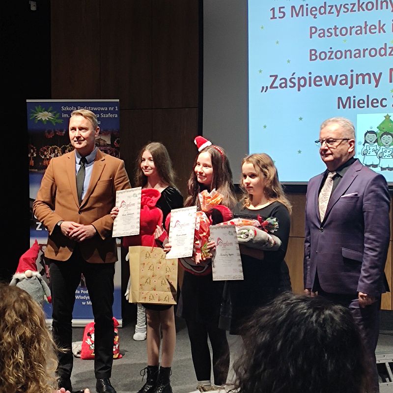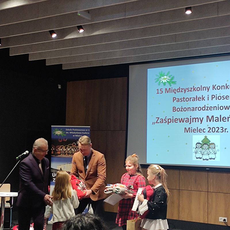 5 grudnia 2023r. w Miejskiej Bibliotece Publicznej SCK w Mielcu odbył się 15 Międzyszkolny Konkurs Kolęd, Pastorałek i Piosenek Bożonarodzeniowych. W konkursie swoje umiejętności wokalne zaprezentowało 26 uczestników z mieleckich Szkół Podstawowych Miło nam poinformować ,że Kinga Borsuk , uczennica klasy 3c oraz Nikola Korczak , uczennica klasy 6d , solistki szkolnego zespołu wokalno-instrumentalnego TRIOLE zdobyły I miejsca w swoich kategoriach wiekowych. Nagrody dla laureatów konkursu wręczyli Jacek Wiśniewski Prezydent Miasta Mielca oraz Dyrektor Szkoły Podstawowej nr 1- Marek Paprocki.