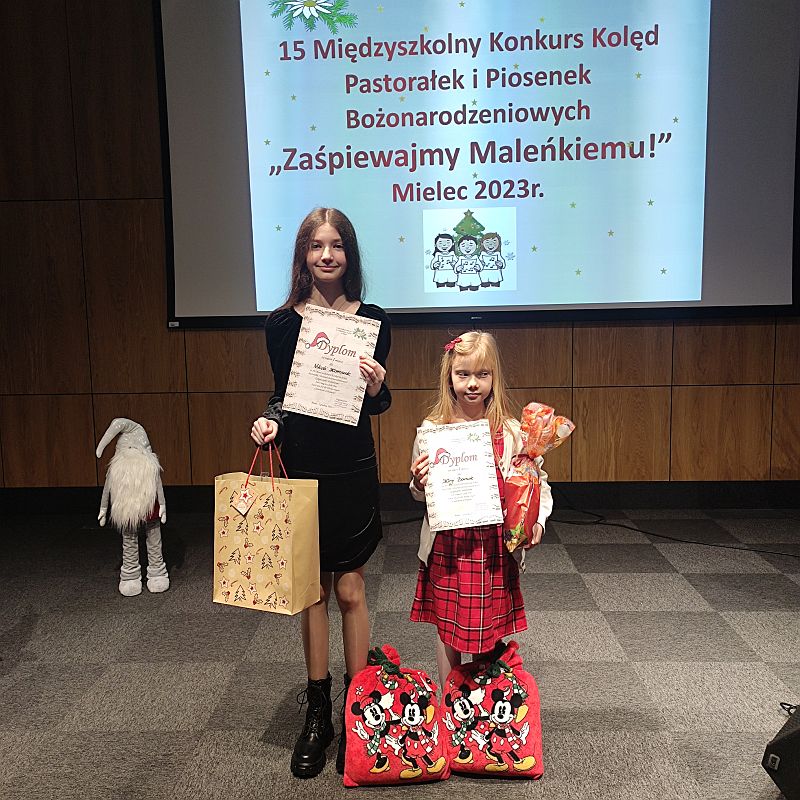 I miejsce Kingi Borsuk i Nikoli Korczak w 15 Międzyszkolnym Konkursie Kolęd, Pastorałek i Piosenek Bożonarodzeniowych.