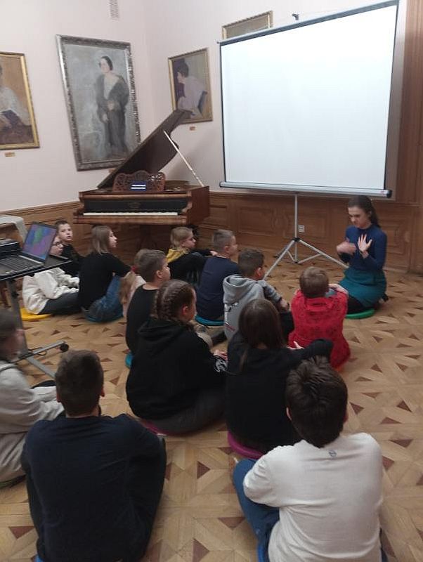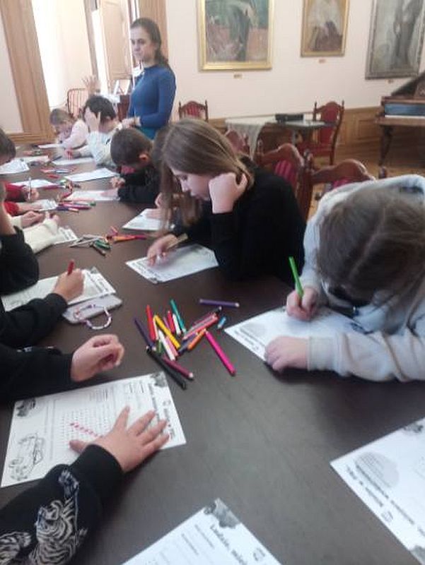 Uczniowie wędrując po muzealnych wnętrzach poznali historię Pałacyku Oborskich, obejrzeli zgromadzone eksponaty ukazujące losy jego dawnych właścicieli.