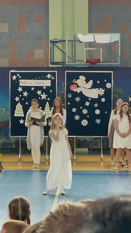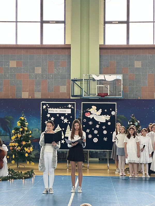 Spiewanie i granie kolęd to jeden z najpiękniejszych zwyczajów związanych ze świętami Bożego Narodzenia, a te z obchodami wydarzeń przyjścia na świat Syna Bożego Jezusa Chrystusa. Kolędowanie zbliża ludzi, buduje między nimi więzi i daje uczucie bliskości. Kolędy zaś przepełnione są ciepłem, dobrem i miłością. Tym wszystkim, czego nam tak często brakuje. Nastrajają nas też optymistycznie - tymi słowami prowadzące koncert „ Raduj się świecie, spotkanie z muzyką , tańcem i słowem” zaprosiły do wysłuchania tego niezwykłego dzieła muzycznego, recytatorskiego i tanecznego.