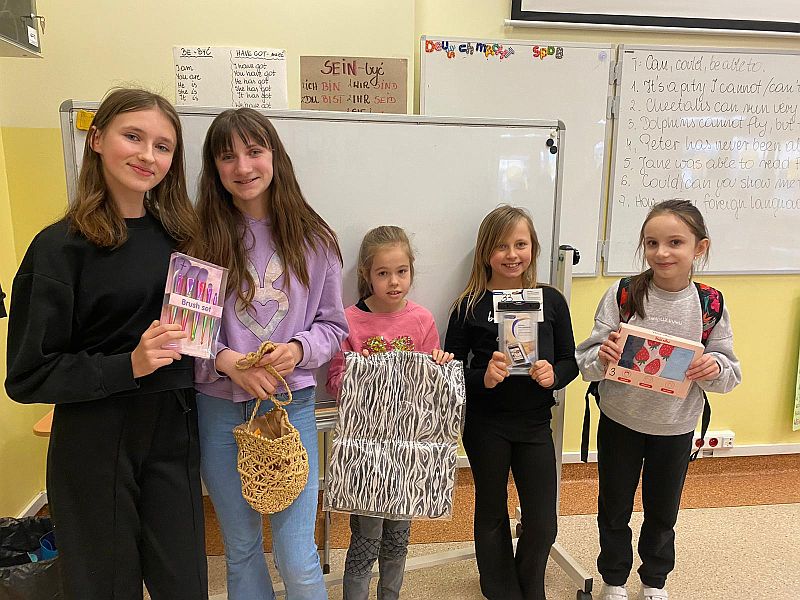„Szczęścia, uśmiechu, dużo radości, spełnienia marzeń”… – te ciepłe słowa kierowali chłopcy do pań i koleżanek z okazji DNIA KOBIET. Wraz z życzeniami, przedstawicielki płci pięknej dostawały kwiatki, czekoladki lub inne symboliczne upominki. Samorząd Uczniowski, pod opieka pań Karoliny Ziobroń i Katarzyny Kuzary, przygotował loterię fantową z okazji święta wszystkich pań. W każdej klasie została wylosowana jedna szczęściara, wszystkie dziewczynki z niecierpliwością czekały na ogłoszenie wyników loterii.Do wygrania były torebki, kosmetyki, sprzęt elektroniczny, pokrowce na telefony, masażery, akcesoria do makijażu itp.