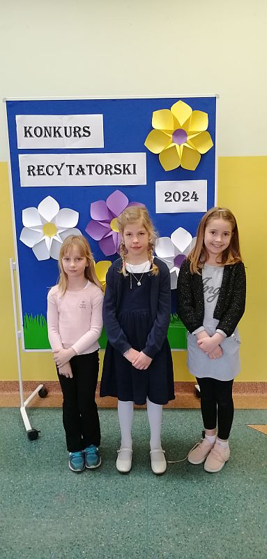 7 marca odbył się Szkolny Konkurs Recytatorski dla klas 1 – 3. Uczniowie klas młodszych recytowali wybrane przez siebie utwory poezji dziecięcej. W konkursie wyróżnienia otrzymali: