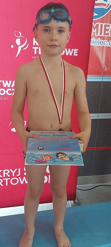 Szymon Kokoszka kl. 2 b – III miejsce na dystansie 25 m stylem dowolnym,