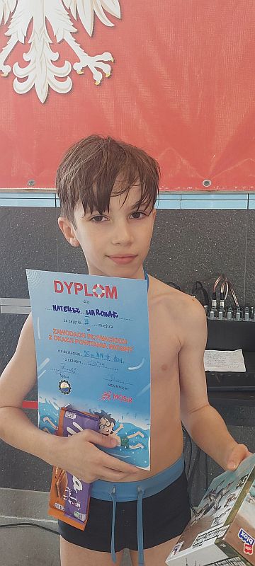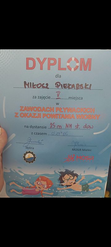 Miłosz Piekarski kl. 2 b – IV miejsce na dystansie 25 m stylem grzbietowym, oraz V miejsce stylem dowolnym,