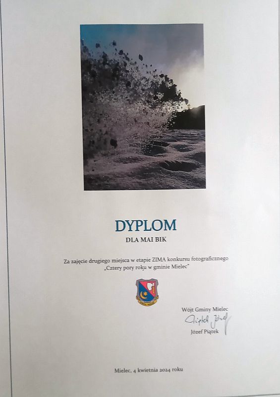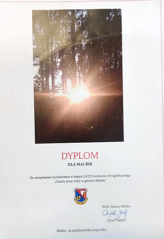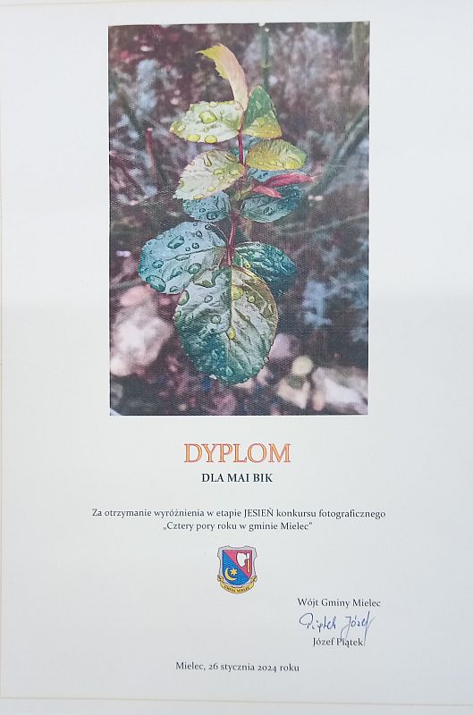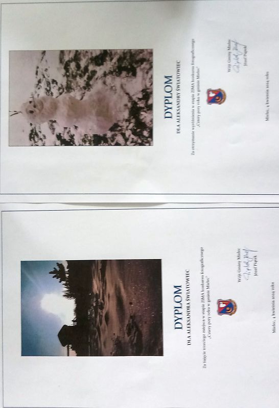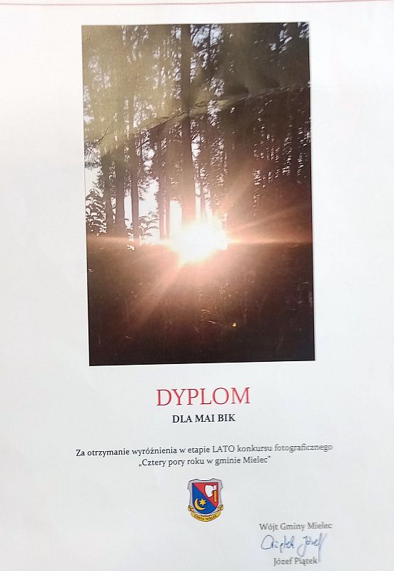 W konkursie fotograficznym pt. „Cztery pory roku w gminie Mielec” zorganizowanym przez Wójta gminy Mielec uczennice naszej szkoły otrzymały: