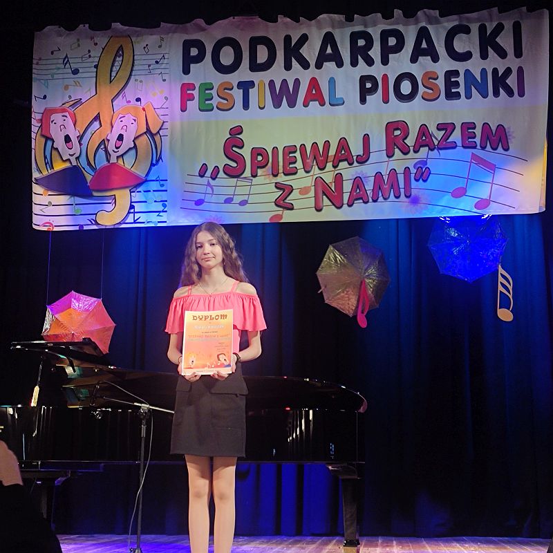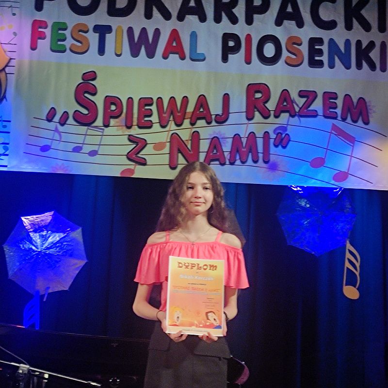 Miło nam poinformować, że Nikola Korczak, uczennica klasy 6d, została laureatką Podkarpackiego Festiwalu Piosenki „ Śpiewaj razem z nami”. Nikola otrzymała wyróżnienie i została zaproszona do udziału w koncercie galowym a Julia Tomaszewska, uczennica klasy 6c, została finalistką tego konkursu.