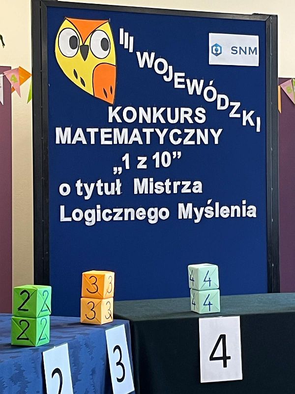 9 kwietnia odbył się finał III Wojewódzkiego Konkursu Matematycznego „JEDEN Z DZIESIĘCIU” o Tytuł Mistrza Logicznego Myślenia. Konkurs ten objęty jest patronatem Marszałka Województwa Podkarpackiego i wpisany jest na listę konkursów kuratoryjnych. Uczennica klasy VIII c Magdalena Miara zakwalifikowała się do finału tego konkursu, który odbył się w Szkole Podstawowej w Cmolasie. Magda odpowiadała ustnie na pytania, które wymagały wiedzy i umiejętności matematycznych, logiki i szybkości myślenia jak również opanowania ( czas na odpowiedź na pytanie to 8 sek.). Po emocjonującym finale i podsumowaniu wyników zdobyła tytuł FINALISTY III Wojewódzkiego Konkursu Matematycznego „JEDEN Z DZIESIĘCIU” o Tytuł Mistrza Logicznego Myślenia.