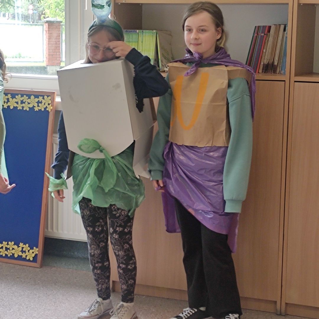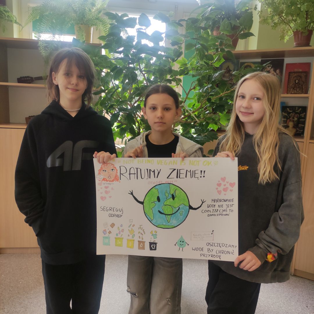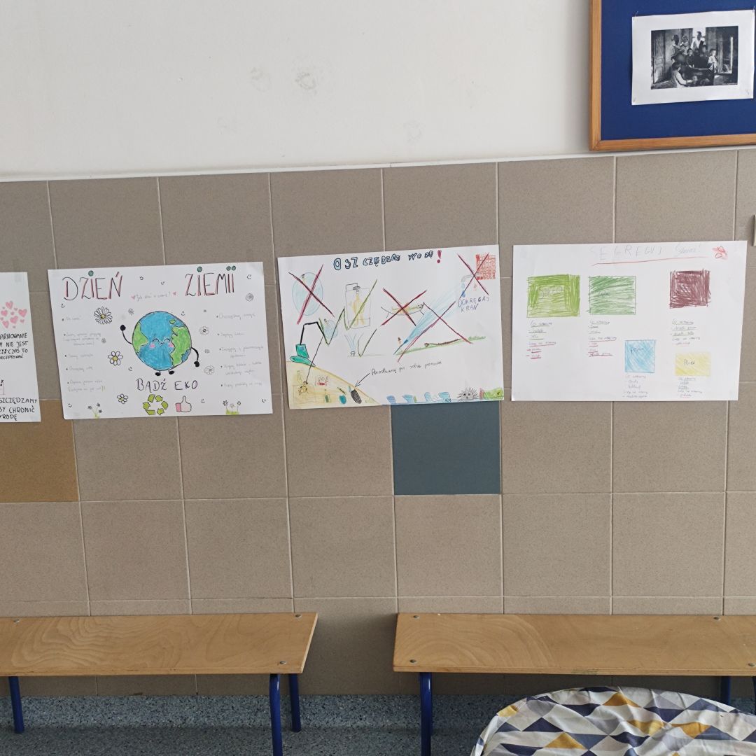 Uczniowie klasy 5b pamiętali o Światowym Dniu Ziemi , który obchodzimy co roku 22 kwietnia. Na zajęciach z wychowawcą , dzieci w grupach , wykonały plakaty o tematyce ekologicznej - zwracające uwagę na dbanie o czystość i ochronę środowiska . Odbył się też pokaz mody , w którym stroje wykonane były z materiałów recyklingowych . Nauka połączona z zabawą to najlepszy sposób by wiedza i dobre nawyki proekologiczne na zawsze pozostały w pamięci .