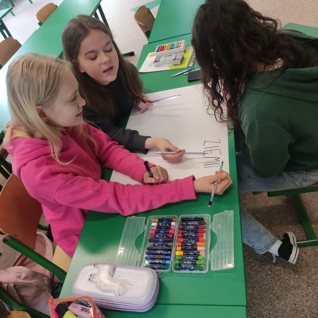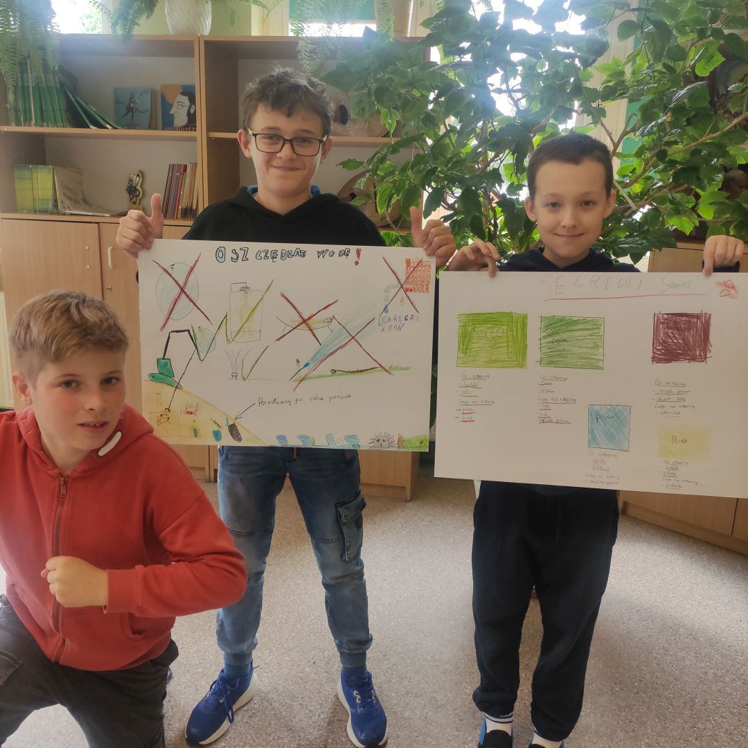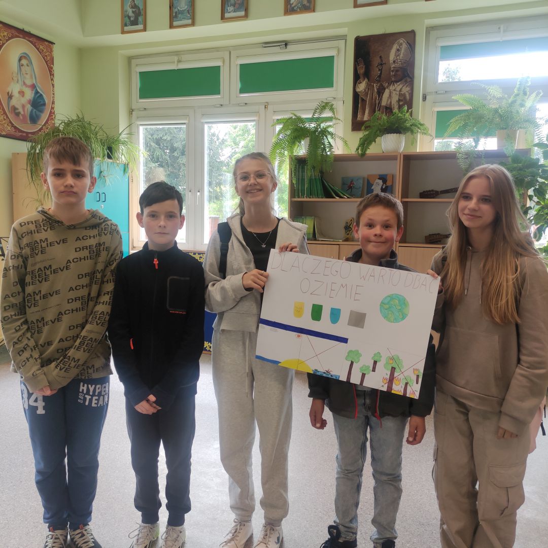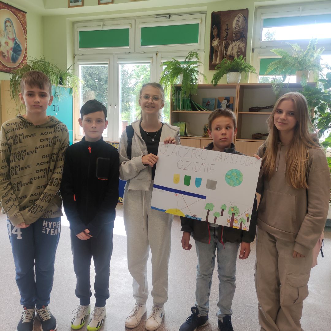 Uczniowie klasy 5b pamiętali o Światowym Dniu Ziemi , który obchodzimy co roku 22 kwietnia. Na zajęciach z wychowawcą , dzieci w grupach , wykonały plakaty o tematyce ekologicznej - zwracające uwagę na dbanie o czystość i ochronę środowiska . Odbył się też pokaz mody , w którym stroje wykonane były z materiałów recyklingowych . Nauka połączona z zabawą to najlepszy sposób by wiedza i dobre nawyki proekologiczne na zawsze pozostały w pamięci .