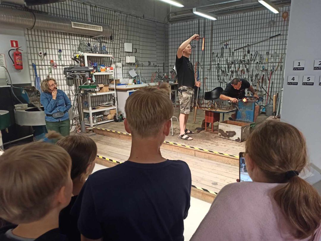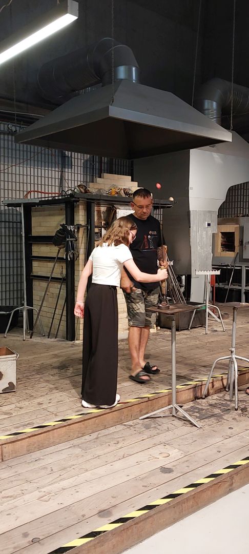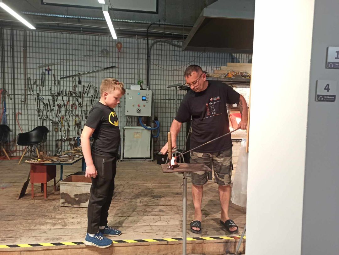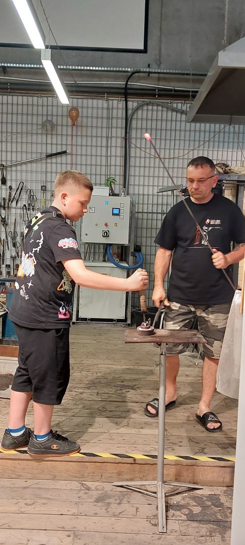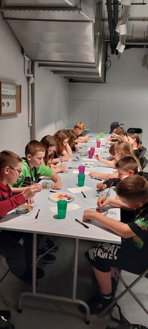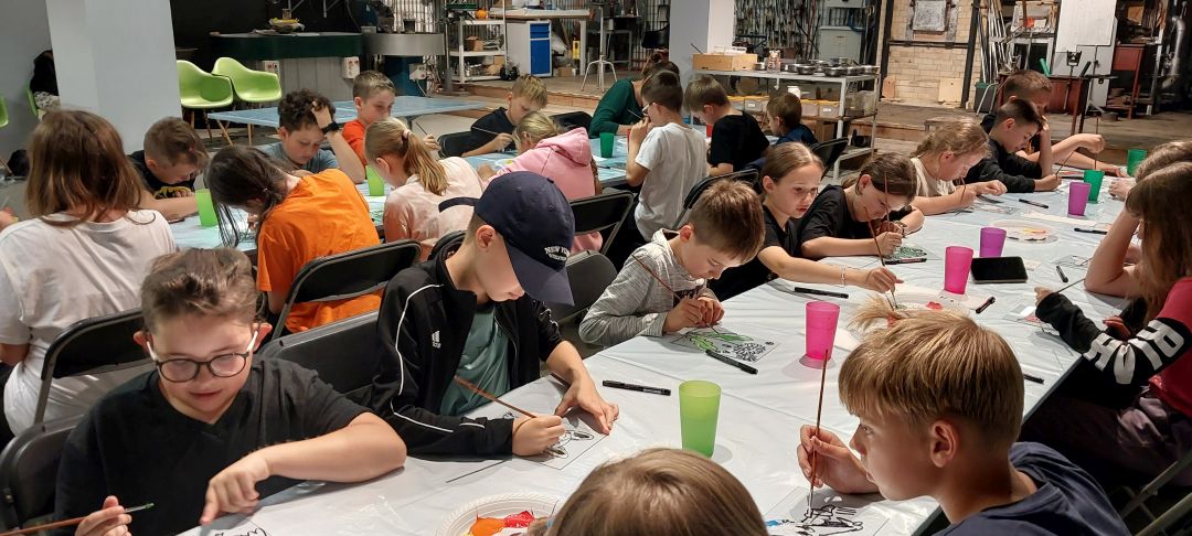 Następnie udaliśmy się do Centrum Dziedzictwa Szkła w Krośnie, gdzie poznaliśmy kolejne etapy produkcji szklanych wyrobów. Widzieliśmy na żywo pracę hutnika, uczestnicząc w pokazie powstawania pięknej szklanej róży. Przekonaliśmy się, jak wielkiej wprawy i umiejętności wymaga proces obróbki i zdobienia szkła, m. in. grawerowanie, malowanie, produkcja witraży. Wielką radość sprawiły warsztaty malowania na szkle, podczas których każdy wykonał swój obrazek na szklanej tafli. Następnie samodzielnie, pod czujnym okiem hutnika, mogliśmy wybić pamiątkowy medal ze szklanej surówki.