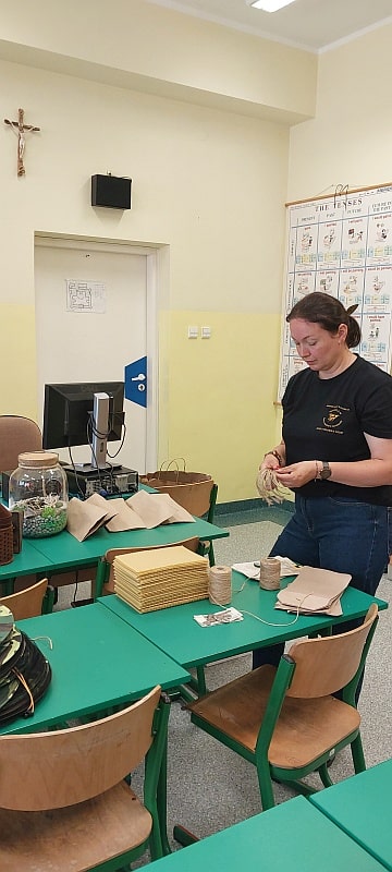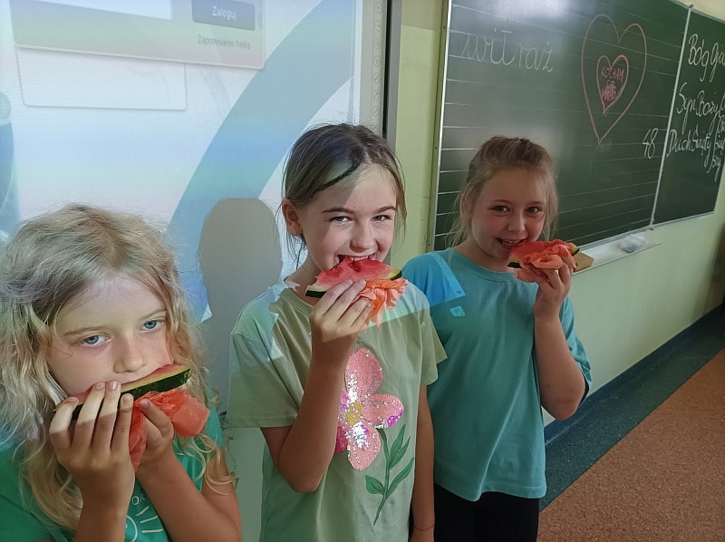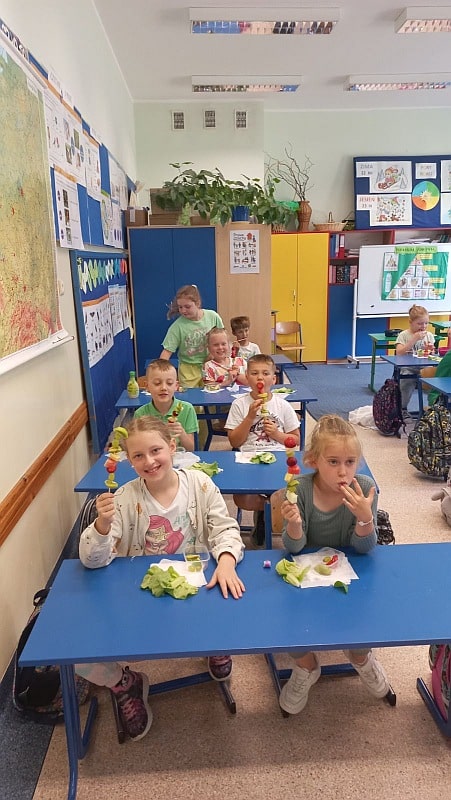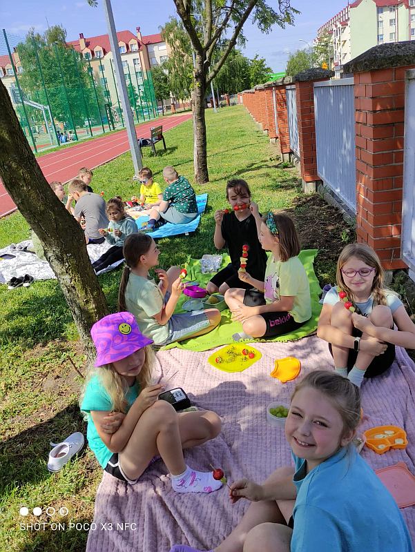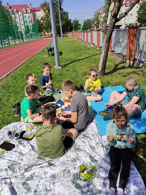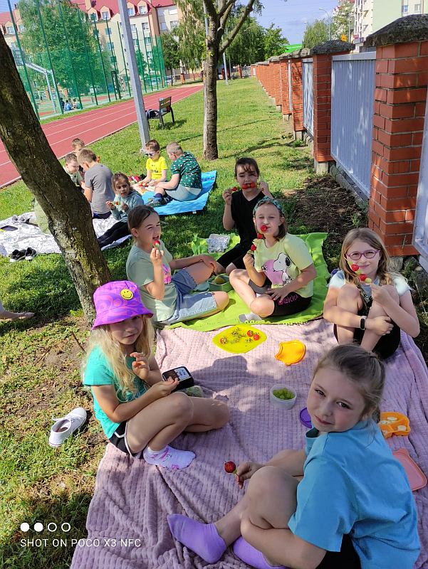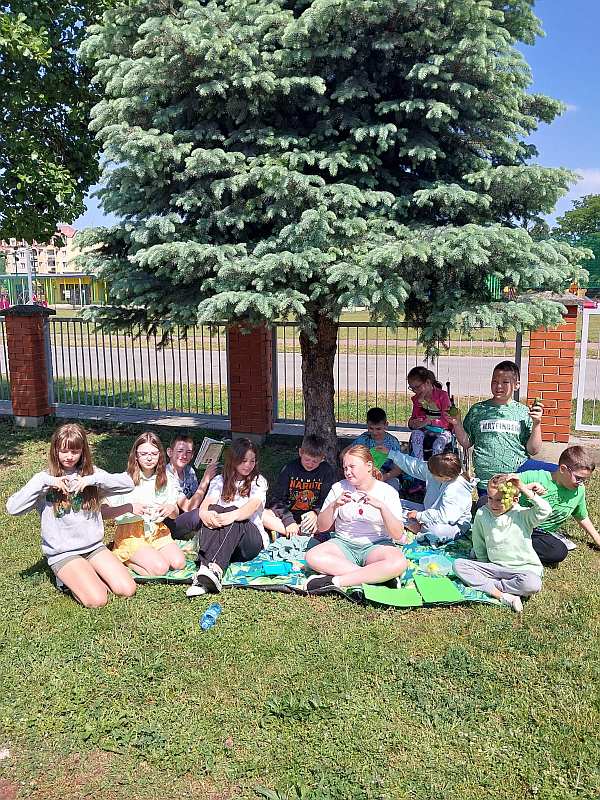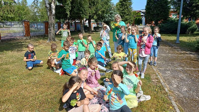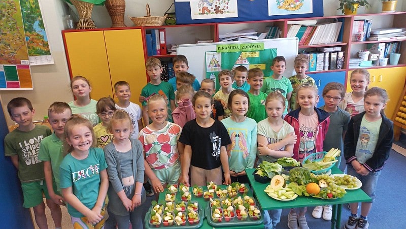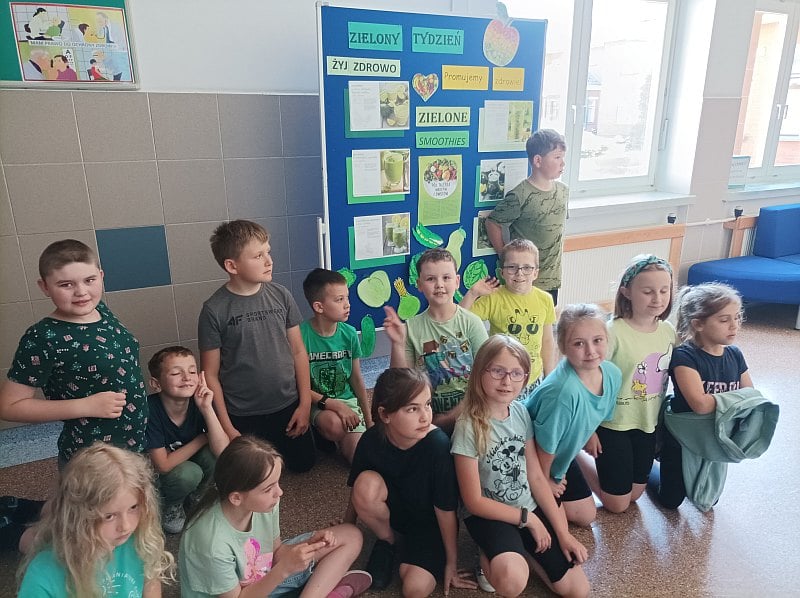 Zielony dzień i piknik klasowy w tym roku przebiegał pod hasłem „Żyj zdrowo”. Uczniowie młodszych klas z wychowawcami przygotowali samodzielnie zielone szaszłyki, sałatki i przekąski z owoców i warzyw oraz wyszli na piknik przed szkołą aby je skonsumować. Na szkolnym korytarzu pojawiły się zielone plakaty zachęcające do spożywania owoców i warzyw. Dopisała piękna pogoda i uczniowie mogli wesoło spędzić czas na kocach podczas wspólnych zabaw. Wszystkie klasy brały udział w ćwiczeniach na sportowym torze przeszkód, który przygotowały p. A.Dziuba oraz p. L.Pieróg. Uczniowie klas4-tych uczestniczyli w warsztatach z pszczelarzami z Fundacji- „Popieram życie miodem słodzone”, podczas których poznali właściwości miodu, a także życie pszczół oraz samodzielnie wykonali świece z wosku pszczelego.