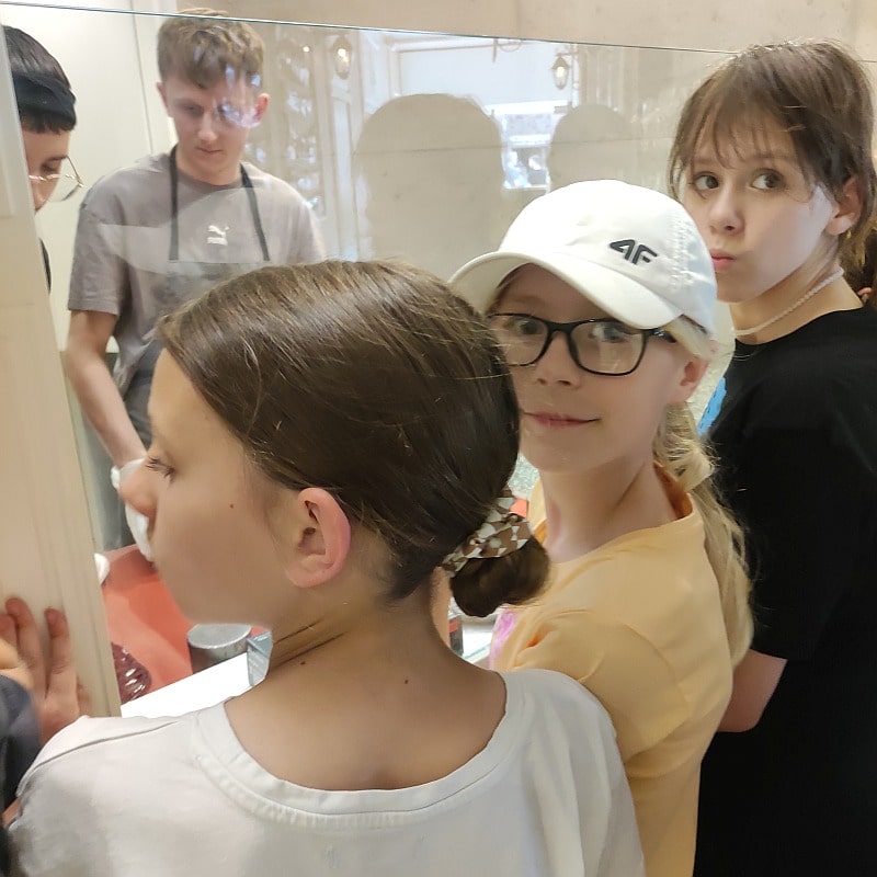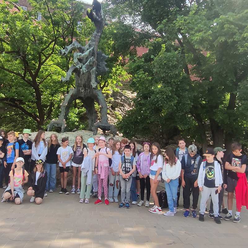 20 maja w poniedziałek uczniowie kl.5b i 4d pojechali na wycieczkę do Krakowa. Pierwszym punktem w planie wycieczki było zwiedzanie Katedry Wawelskiej z audioprzewodnikiem , oraz wyjście na wieżę z Dzwonem Zygmunta skąd rozpościerał się piękny widok na miasto. Po zwiedzaniu uczniowie przeszli na dziedziniec Wawelu a następnie spacerkiem udali się do Smoczej Jamy . U Smoka Wawelskiego cała grupa zrobiła sobie pamiątkowe zdjęcie na co Smok aż zazionął ogniem z radości :)) Po wizycie na Wawelu cała gruoa udała się na Rynek Główny do Sukiennic , uczniowie podziwiali również architekrurę Kościoła Mariackiego. Był czas na pamiątki i wspólne zdjęcia. Druga część wycieczki to warsztaty cukiernicze – pokaz powstawania cukierków i lizaków oraz wizyta w Muzeum Figur Woskowych . Wrażeń było co nie miara. Uśmiechy na twarzach były dowodem dobrej zabawy . Około godziny 20,00 bezpiecznie wróciliśmy do Mielca.