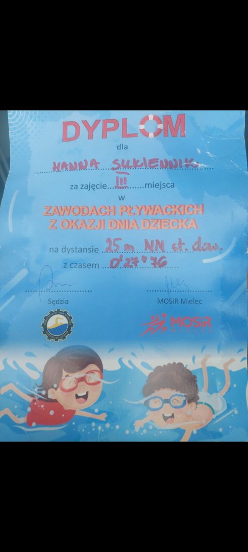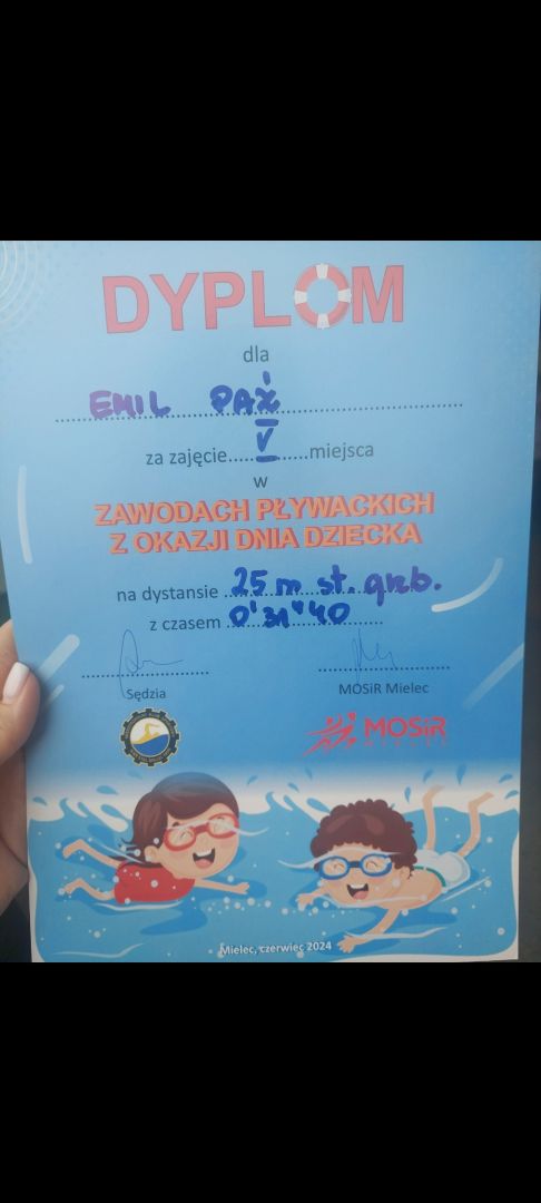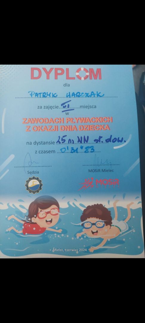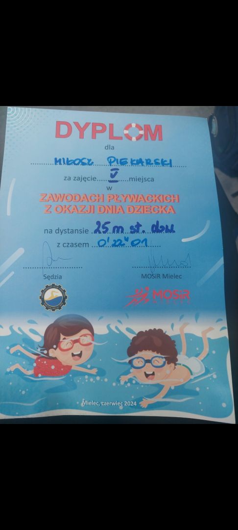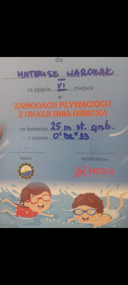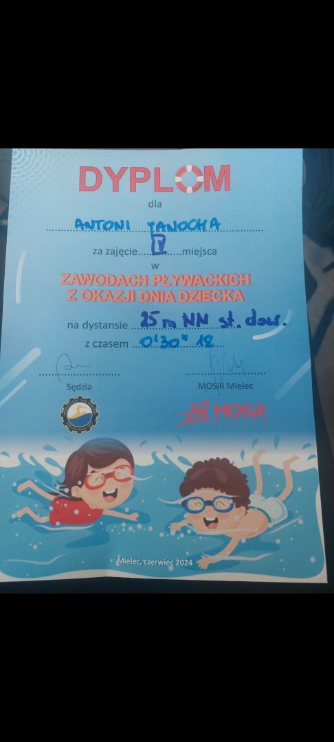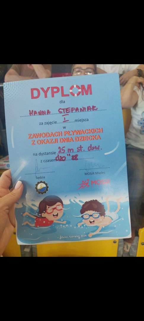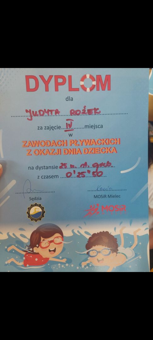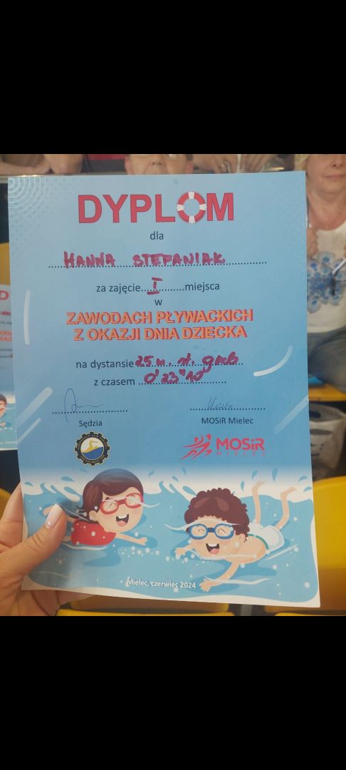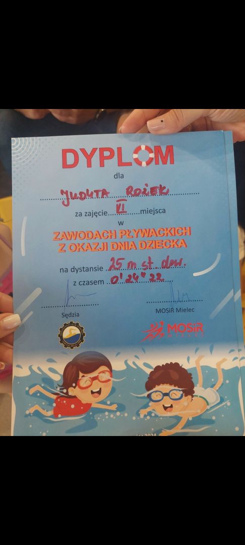 W dniu 04.06.2024 r w Pływalni Smoczka odbyły się zawody pływackie dla klas I-III szkół podstawowych. Z okazji „ Dnia Dziecka ” organizowanych przez MOSIR Mielec. Wyniki naszych uczniów: