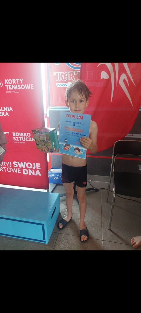 Emil Paź kl. 1 c – V miejsce na dystansie 25 m stylem grzbietowym,