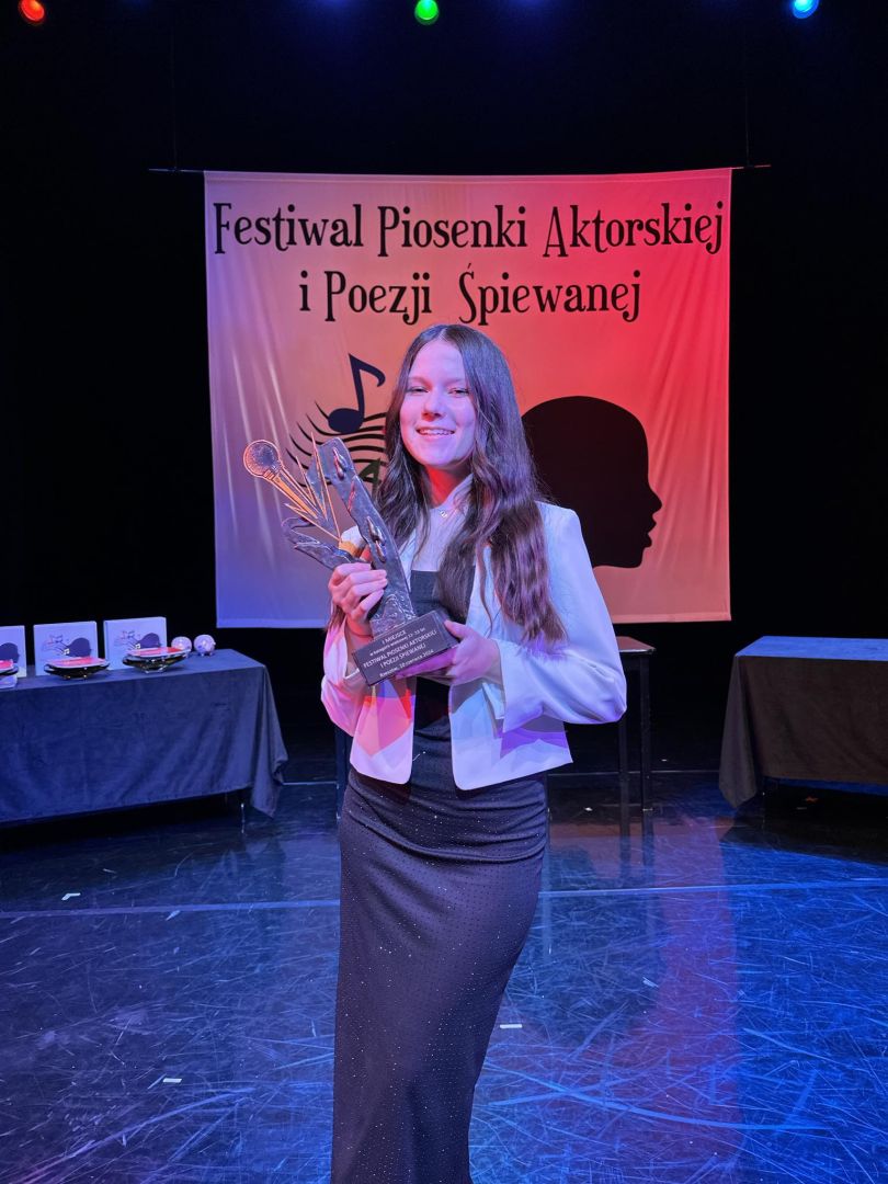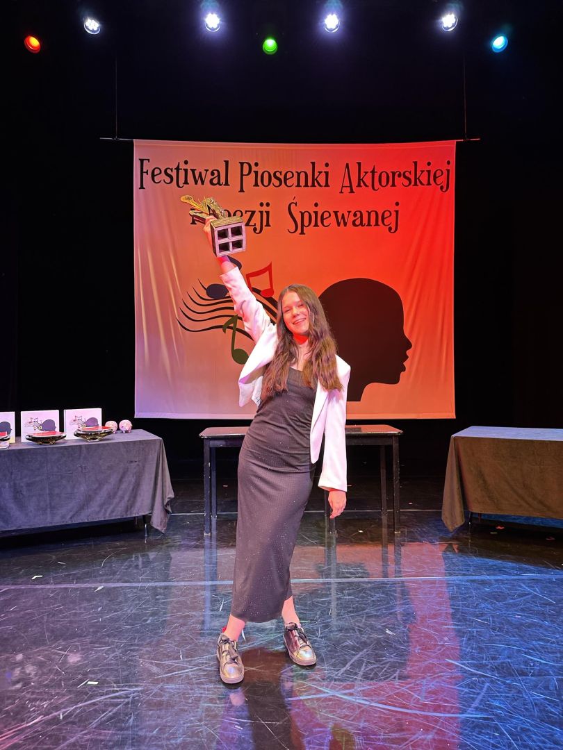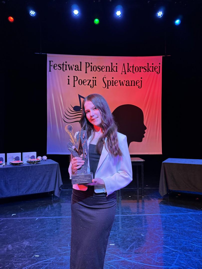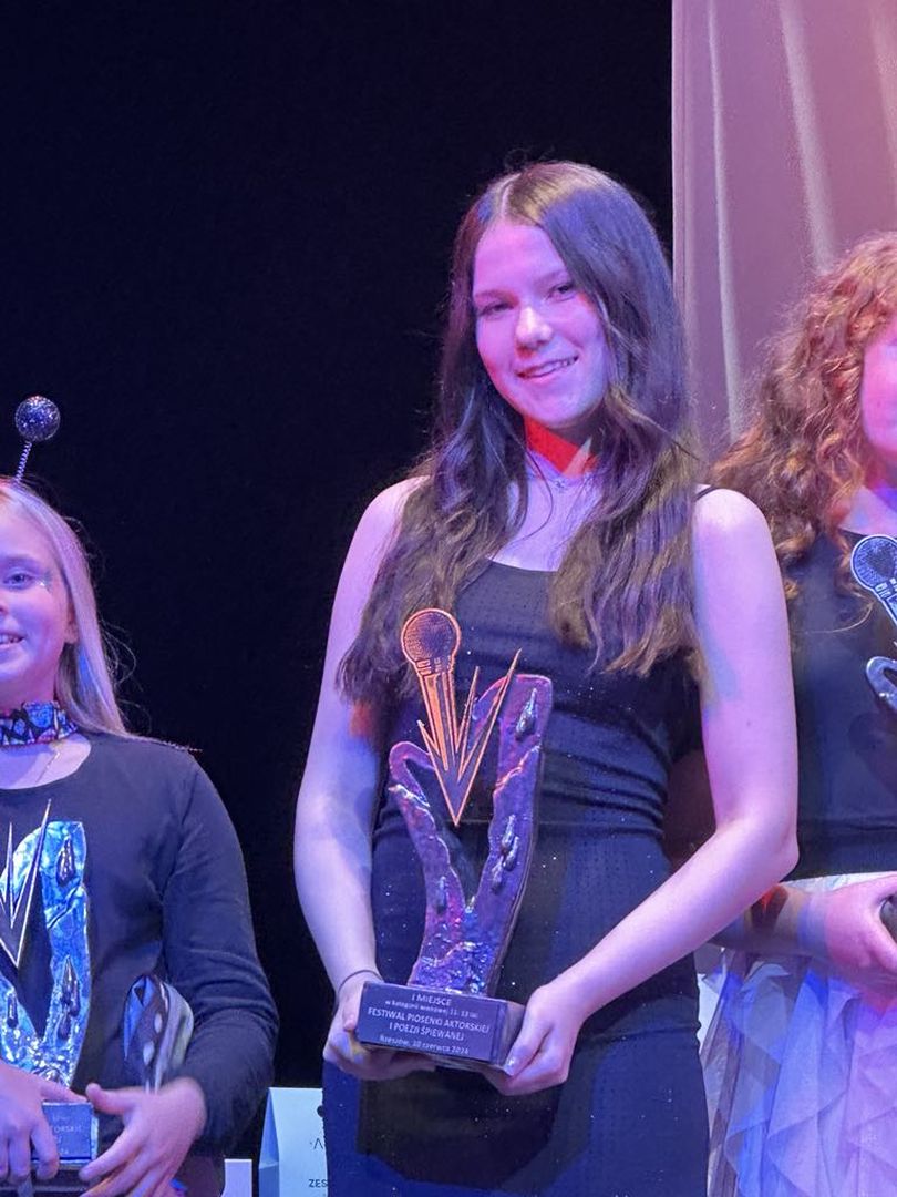 Z ogromną radością dzielę się kolejnym osiągnięciem wokalnym Julii Tomaszewskiej , uczennicy naszej szkoły , z klasy 6c , ktòra w poniedziałek tj. 10.06.2024r.,w swojej kategorii wiekowej, wyśpiewała I miejsce w III Ogòlnopolskim Festiwalu Piosenki Aktorskiej i Poezji Śpiewanej. Julia zachwyciła jury wykonaniem i interpretacją piosenki "Konie" M. Rodowicz . Słuchając występu Julii ,już od pierwszych dźwięków pojawiły się u mnie "emocje na skòrze" . Jestem pewna, że nie tylko u mnie. Julia ma ogromny talent i dar śpiewania " emocjami" czym porusza do głębi .