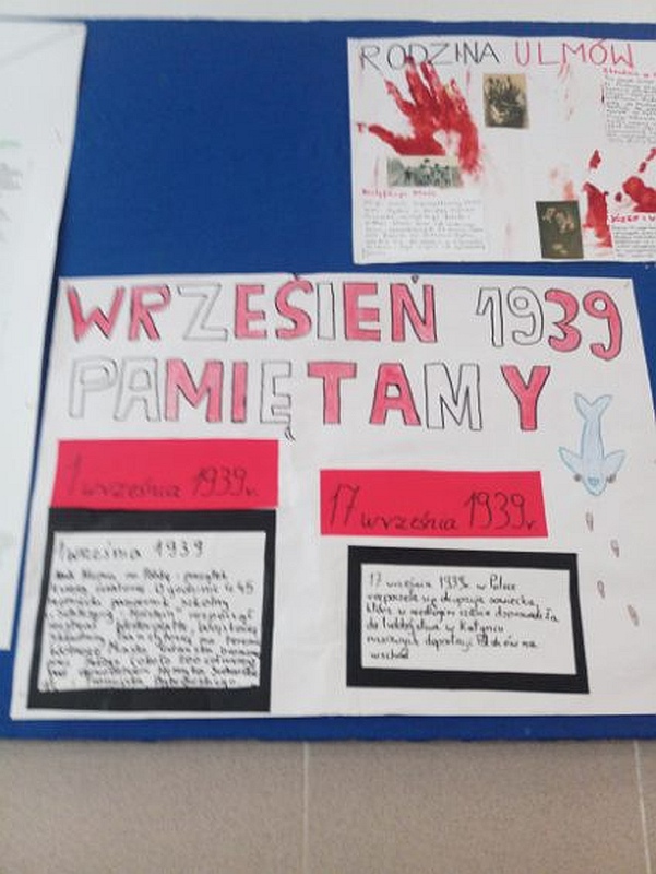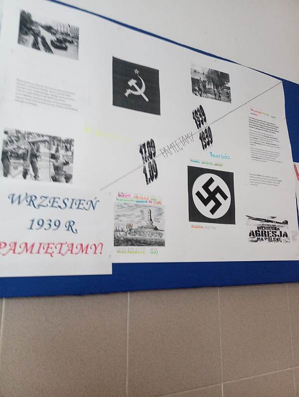 - „Wrzesień 1939 r. - pamiętamy!” – uczczenie rocznicy wybuchu drugiej wojny światowej: 1 września - agresja niemiecka na Polskę; 17 września – agresja sowiecka na Polskę – projekt w klasach 7 i w kl. 8d;